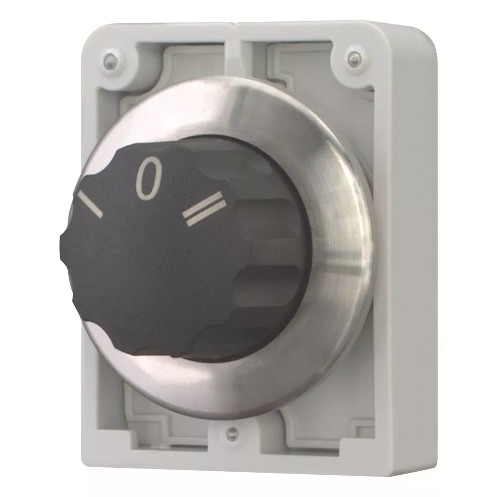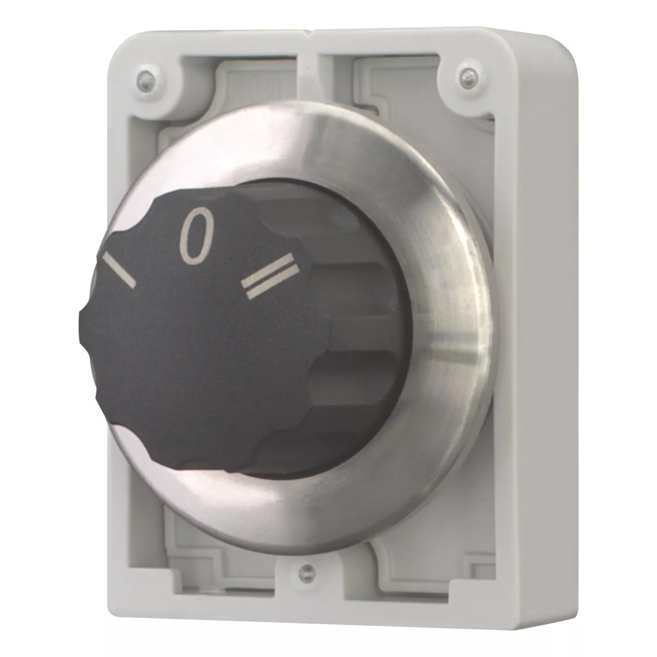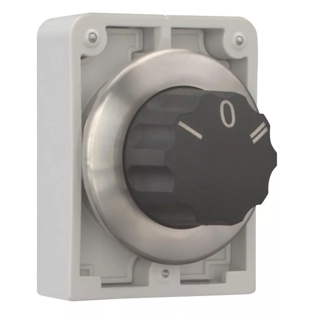 Przełącznik wybierakowy, gama produktów: RMQ-Titan, Urządzenie pojedyncze, Projekt: z główką obrotową, bez samopowrotu, 3 położenia, z oznaczeniem, Stopień ochrony: IP64, Pierścień czołowy stal nierdzewna, Podłączanie do SmartWire-DT: tak, z przyłączami SWD-RMQ, Wymiary przedniej części: Ø 36 mm, Instrukcje: Funkcja zatrzymania / powracania przycisku, może zostać zmieniony za pomocą elementów kodujących M22-XC-Y, z mostkiem popychacza dla styku środkowego, Normy: IEC/EN 60947, VDE 0660, Stopień ochrony: IP64