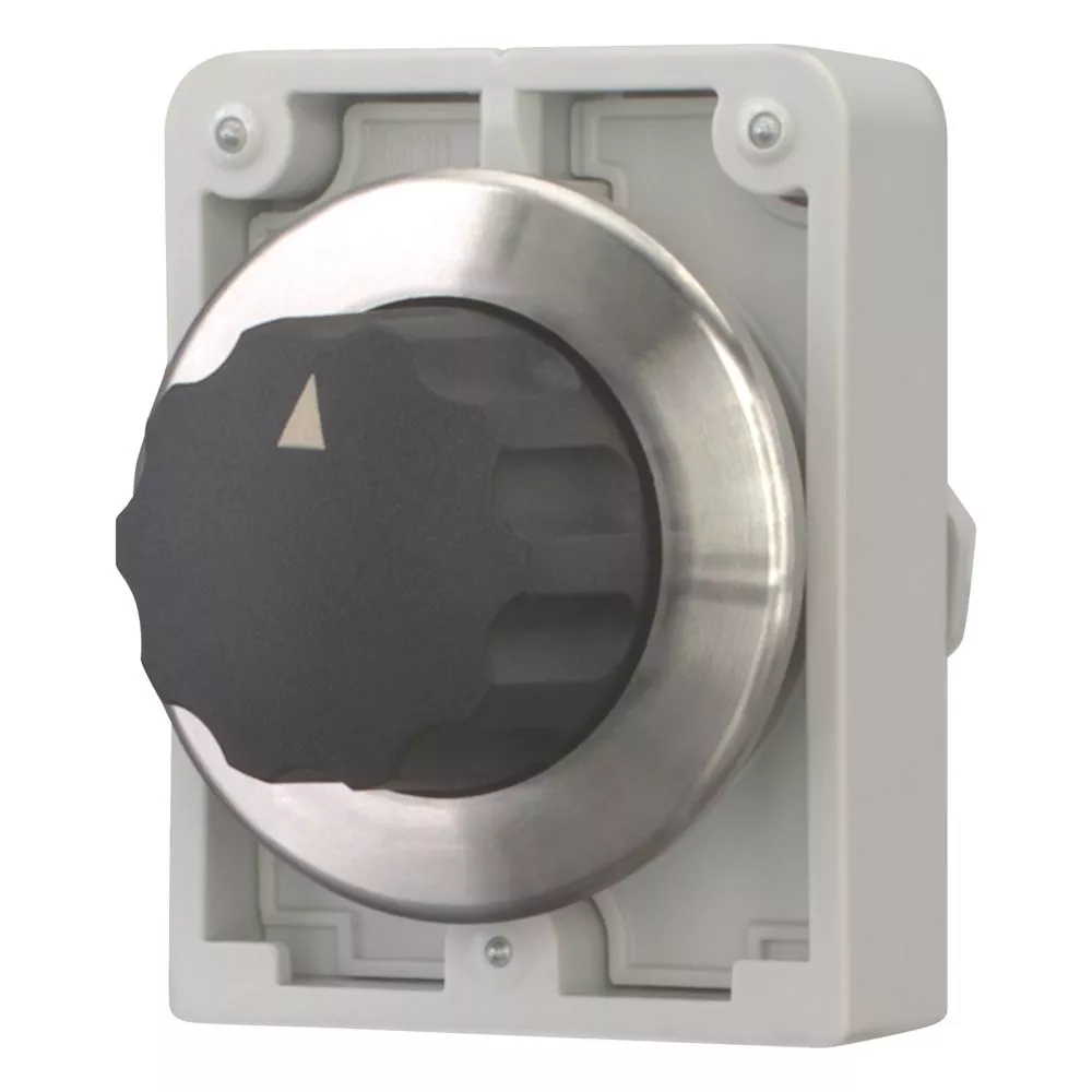 Przełącznik wybierakowy, Zakres produktów: RMQ-Titan, Urządzenie pojedyncze, Projekt: z główką obrotową, bez samopowrotu, 4 położenia, z oznaczeniem, Stopień ochrony: IP64, Pierścień czołowy stal nierdzewna, Podłączanie do SmartWire-DT: tak, z przyłączami SWD-RMQ, Wymiary przedniej części: Ø 36 mm, Instrukcje: Nie pasuje do elementów kodujących, Użyć adaptera mocującego M22-A4 → akcesoria, Tabliczki → akcesoria, Normy: IEC/EN 60947, VDE 0660, Stopień ochrony: IP64