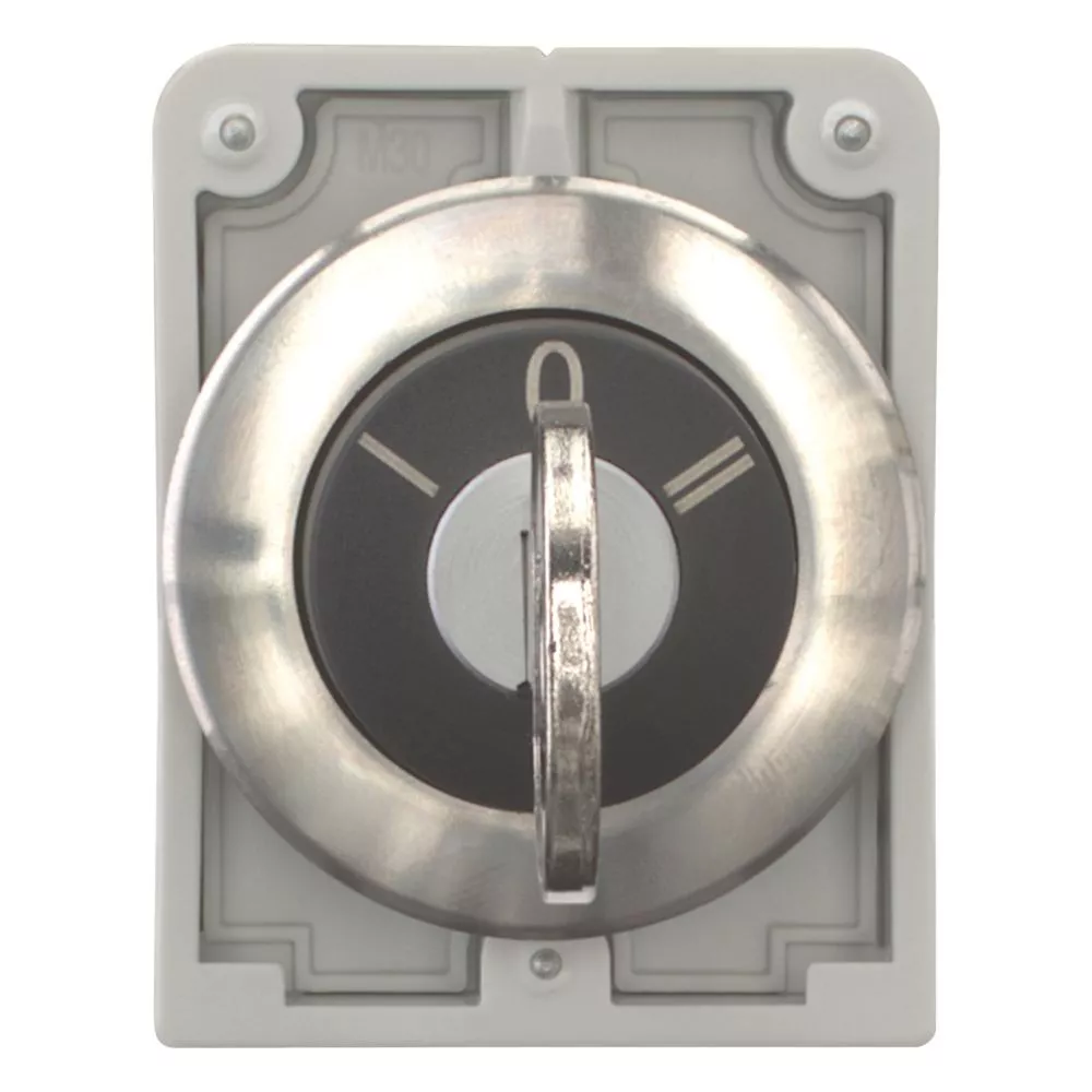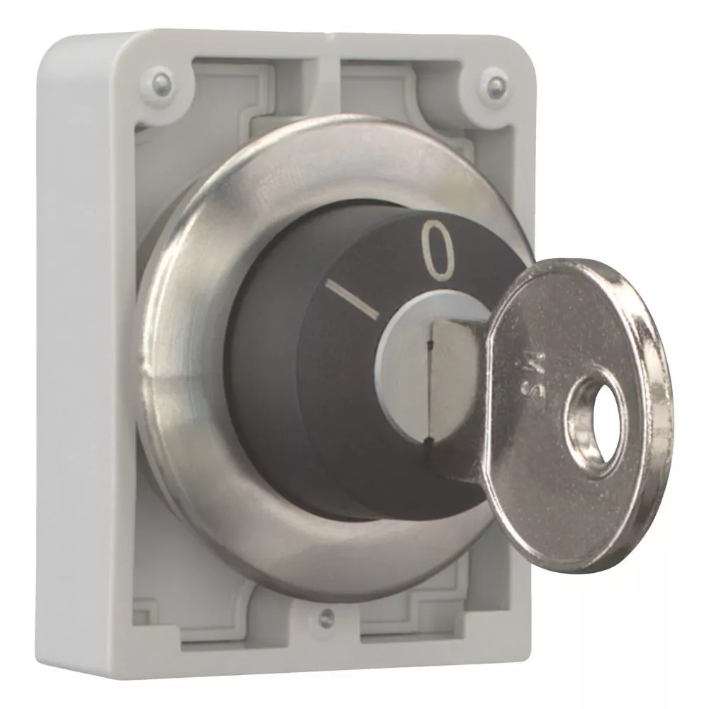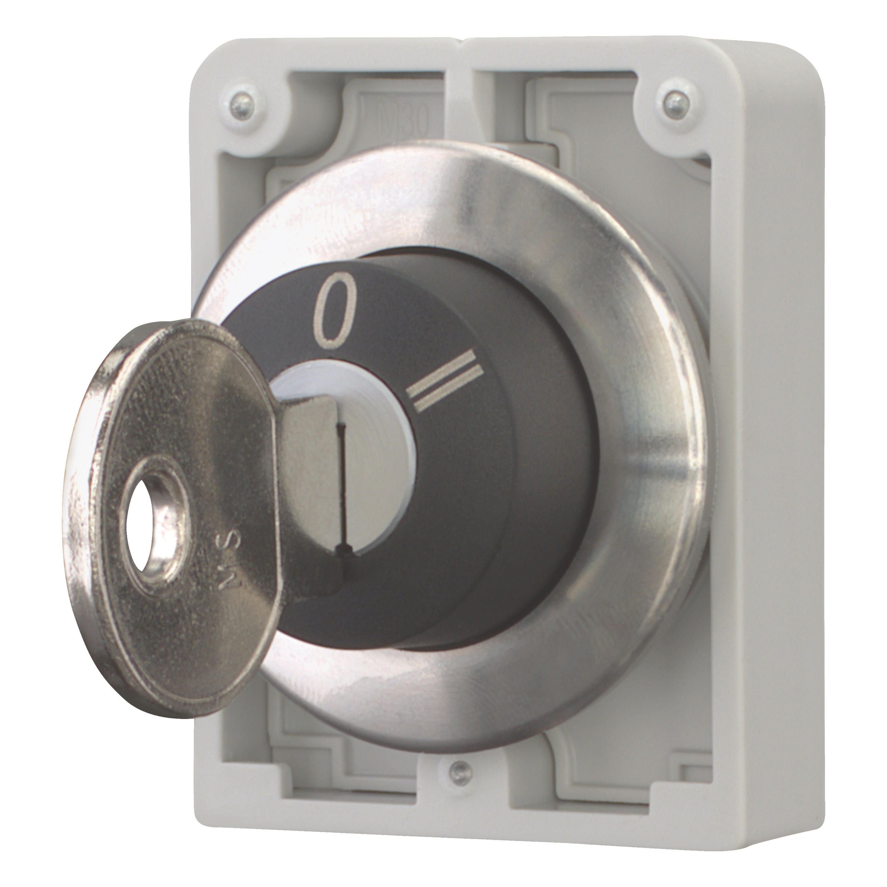 Element uruchamiający z kluczem, Zacisk śrubowy: RMQ-Titan, Urządzenie pojedyncze, Projekt: Mechanizm blokujący pracę, na kluczyk, bez samopowrotu, Nie nadaje się do zamków systemowych, 3 położenia, do wyboru, Stopień ochrony: IP64, Pierścień czołowy stal nierdzewna, Podłączanie do SmartWire-DT: tak, z przyłączami SWD-RMQ, Wymiary przedniej części: Ø 36 mm, Instrukcje: Funkcja zatrzymania / powracania przycisku, może zostać zmieniony za pomocą elementów kodujących M22-XC-Y, Konfigurowalny kluczyk wysuwny z adapterami kodującymi M22-XC-…, z mostkiem popychacza dla styku środkowego, Z 1 kluczem, Normy: IEC/EN 60947, VDE 0660, Stopień ochrony: IP64