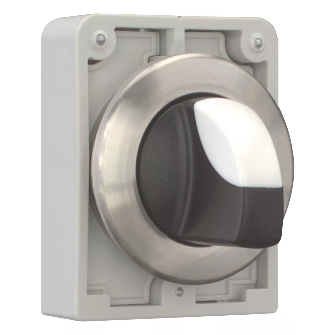 Przełącznik wybierakowy, gama produktów: RMQ-Titan, Urządzenie pojedyncze, Projekt: z pokrętłem, z samopowrotem, 3 położenia, Stopień ochrony: IP64, Pierścień czołowy stal nierdzewna, Podłączanie do SmartWire-DT: tak, z przyłączami SWD-RMQ, Wymiary przedniej części: Ø 36 mm, Instrukcje: Funkcja zatrzymania / powracania przycisku, może zostać zmieniony za pomocą elementów kodujących M22-XC-Y, z mostkiem popychacza dla styku środkowego, Normy: IEC/EN 60947, VDE 0660, Stopień ochrony: IP64