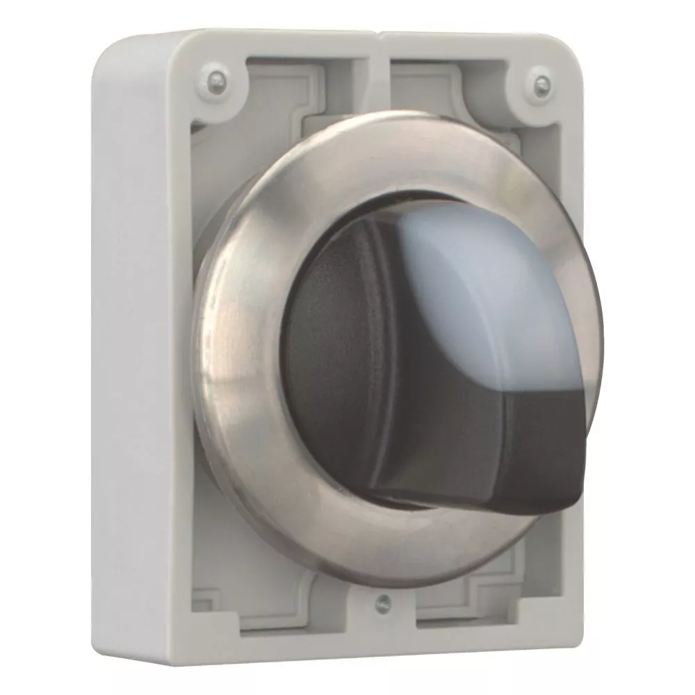 Przełącznik podświetlany, Zacisk śrubowy: RMQ-Titan, Urządzenie pojedyncze, Projekt: z pokrętłem, z samopowrotem, 3 położenia, Kolor uchwytu na kciuk: Biały, Stopień ochrony: IP64, Pierścień czołowy stal nierdzewna, Podłączanie do SmartWire-DT: tak, z przyłączami SWD-RMQ, Wymiary przedniej części: Ø 36 mm, Instrukcje: Funkcja zatrzymania / powracania przycisku, może zostać zmieniony za pomocą elementów kodujących M22-XC-Y, Normy: IEC/EN 60947, VDE 0660, Stopień ochrony: IP64