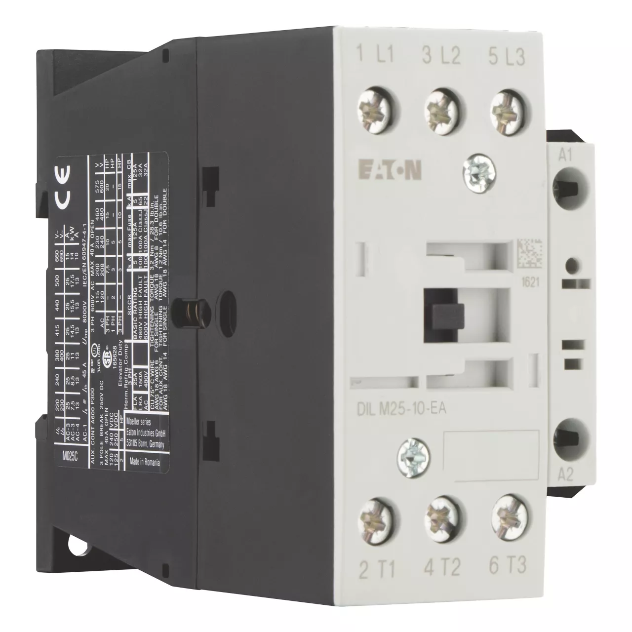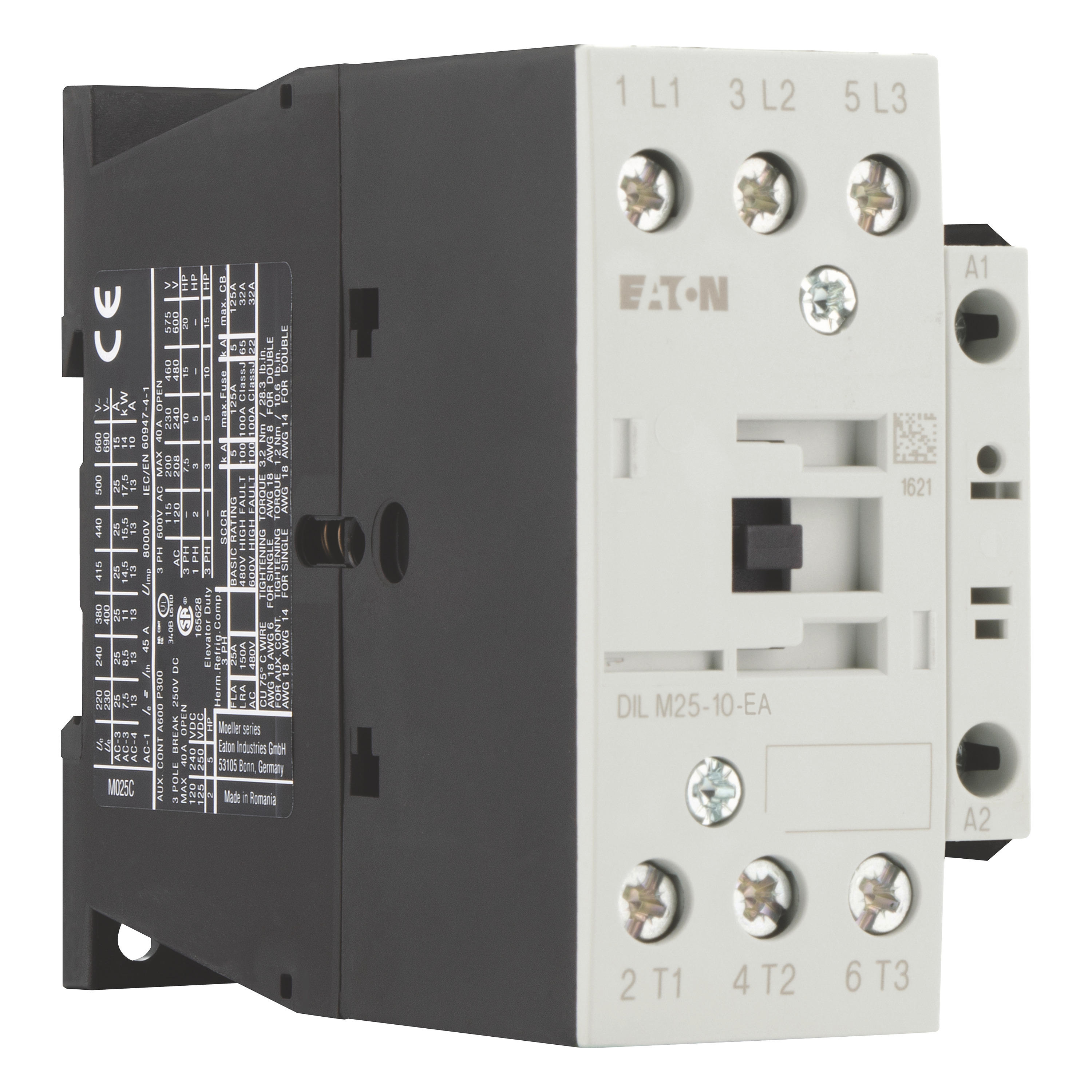 Stycznik, Zastosowanie: Styczniki do silników, Styczniki do 170 A, 3-biegunowy, Kategoria użytkowa: AC-1: Obciążenia nieindukcyjne lub obciążenia o małej indukcyjności, piece oporowe, NAC-3: Standardowe silniki indukcyjne AC: rozruch, wyłączanie w trakcie pracy, AC-4: Stand. silniki indukcyjne AC: rozruch, podłączanie, cofanie, praca spowolnion, Sposób podłączenia: Zaciski śrubowe, Uwagi: Odpowiednie również dla silników o klasie sprawności IE3., Urządzenia spełniające normy IE3 są oznaczone odpowiednim logo na opakowaniu., Liczba biegunów: 3-biegunowy, Znamionowy prąd roboczy AC-3, 380 V 400 V: Ie= 25 A, Znamionowy prąd roboczy AC-1 Prąd cieplny umowny na wolnym powietrzu, 3-biegunowy