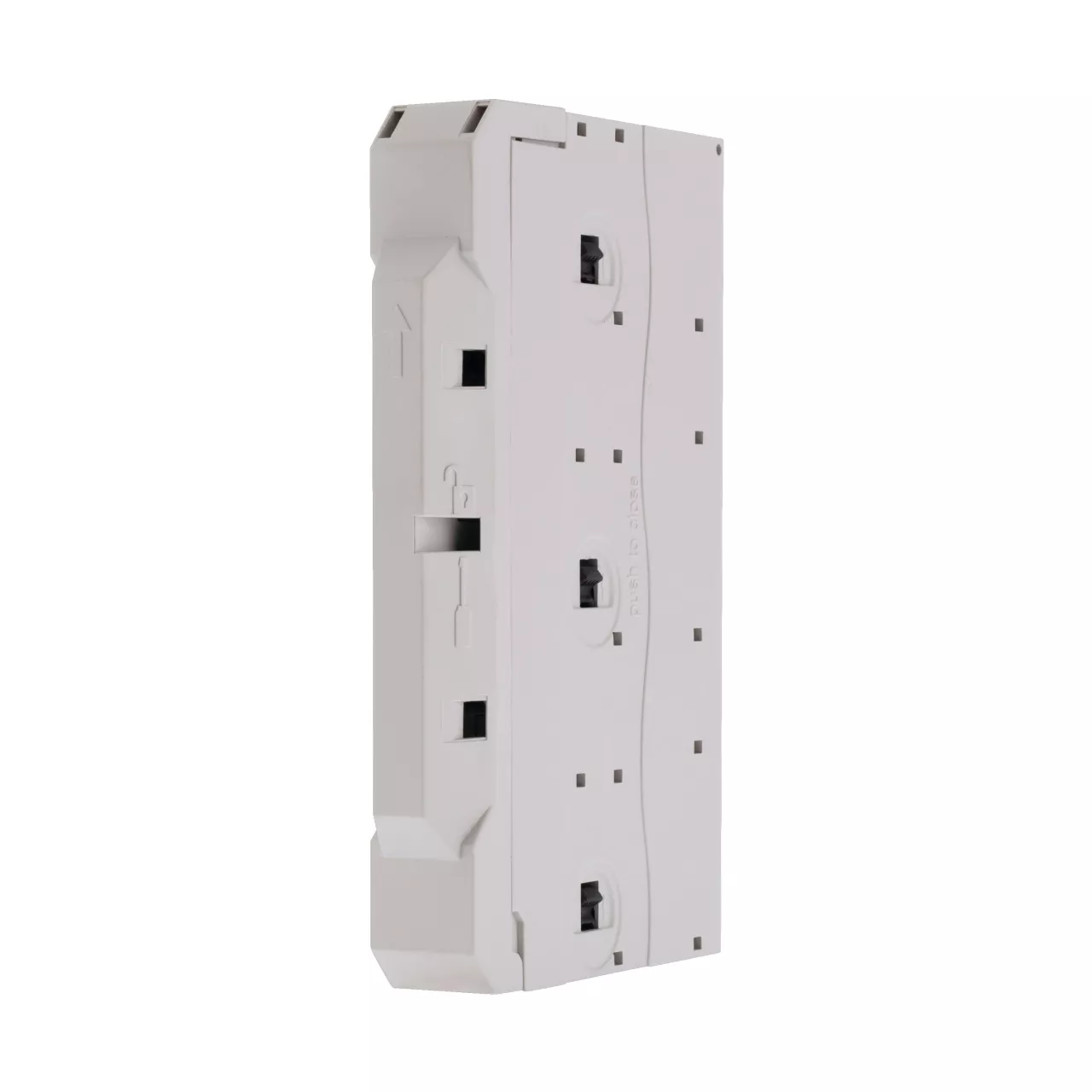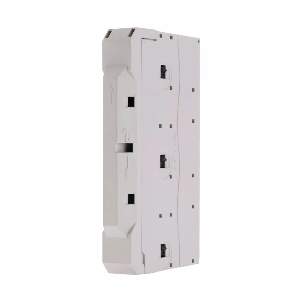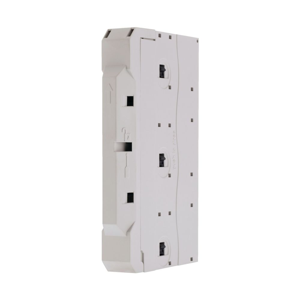 Moduł zasilający, Zacisk śrubowy: Akcesoria, Materiał: Bez halogenu, Samogasnący zgodnie z UL 94, Odporność na prąd upływu: CTI 600, Odporność temperaturowa: do 125 °C, Sposób podłączenia: Zaciski sprężynowe, Szerokość: 23 mm, Bieguny: 3, Znamionowy prąd roboczy: Ie= 80 A, przewodnik: 1,5 - 16 mm², AWG 14 - 6