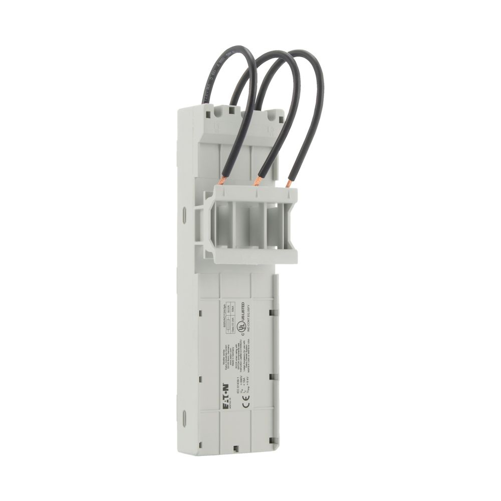 Adapter, Zacisk śrubowy: Akcesoria, Adapter na szyny zbiorcze, Zatwierdzono zgodność z normą UL 508, Do zastosowania z: PKZM0/PKE12, Znamionowe napięcie robocze: Ue = 690 V, Znamionowy prąd roboczy: Ie = 16 A, Przekrój przyłącza: AWG 14, (2,5 mm²), Szerokość adaptera: 45 mm, Długość adaptera: 160 mm, Szyna DIN: 1