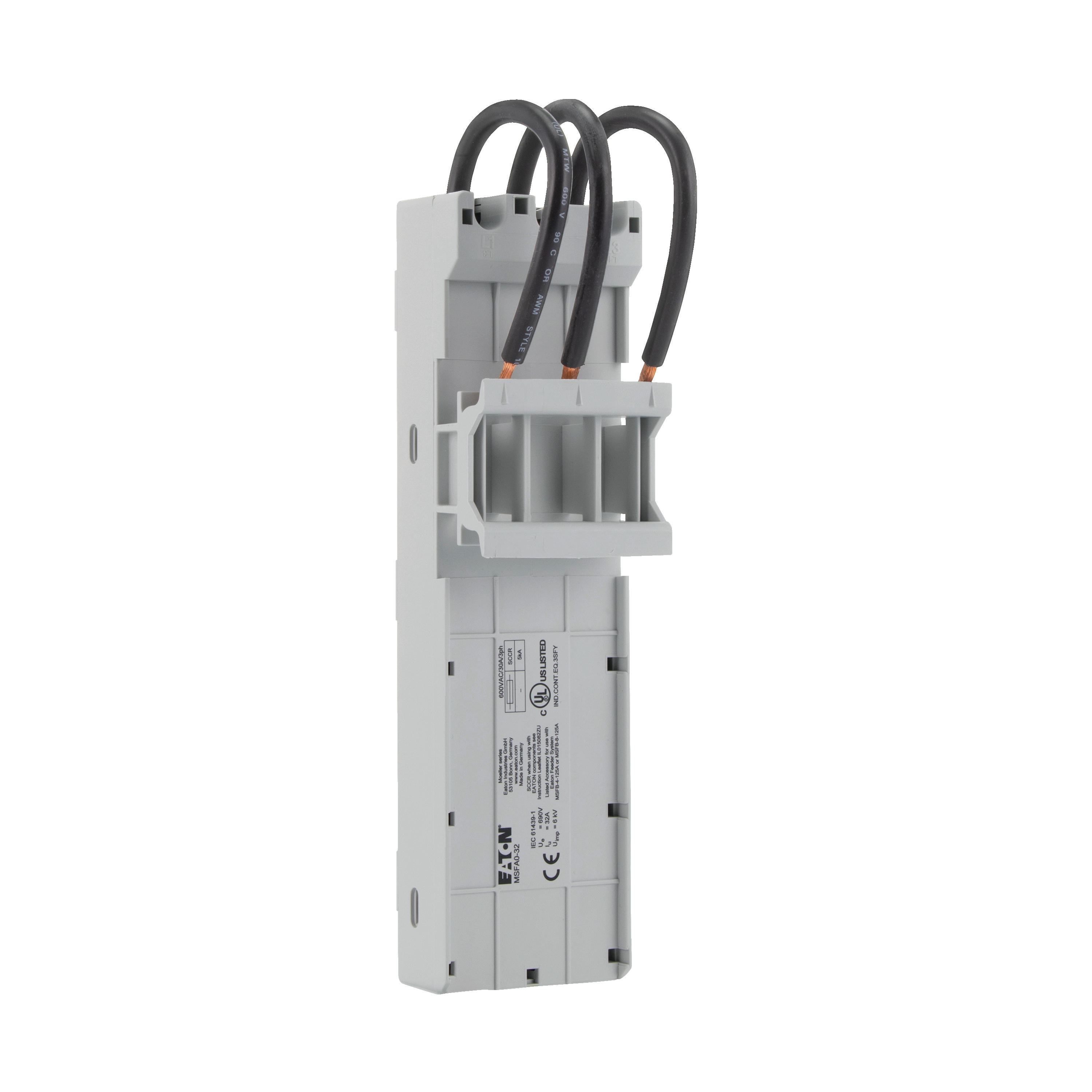 Adapter, Zacisk śrubowy: Akcesoria, Adapter na szyny zbiorcze, Zatwierdzono zgodność z normą UL 508, Do zastosowania z: PKZM0/PKE32, Znamionowe napięcie robocze: Ue = 690 V, Znamionowy prąd roboczy: Ie= 32 A, Przekrój przyłącza: AWG 10, (6 mm²), Szerokość adaptera: 45 mm, Długość adaptera: 160 mm, Szyna DIN: 1