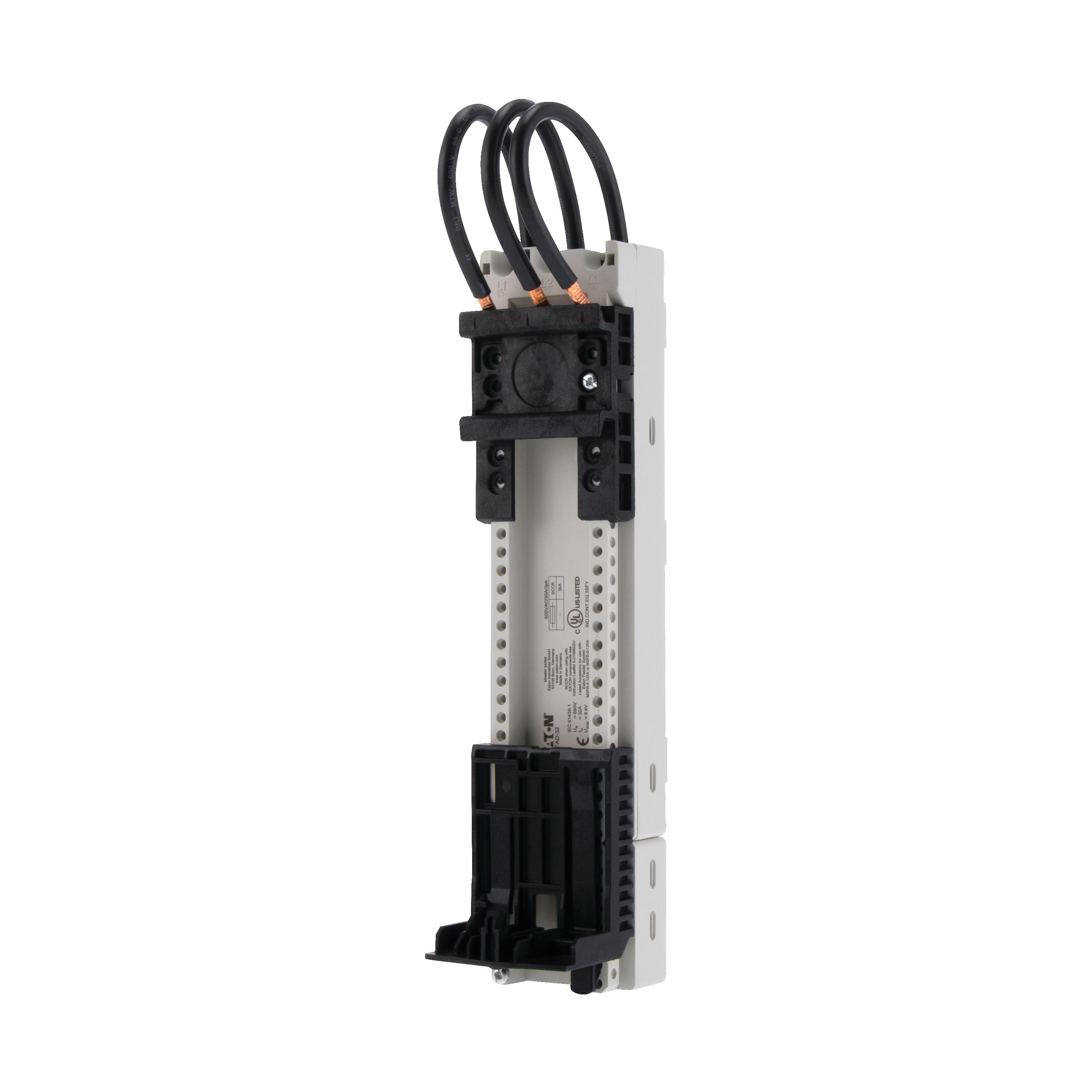 Adapter, Zacisk śrubowy: Akcesoria, Adapter na szyny zbiorcze, Zatwierdzono zgodność z normą UL 508, Do zastosowania z: MSC-D, 32 A, Znamionowe napięcie robocze: Ue = 690 V, Znamionowy prąd roboczy: Ie= 32 A, Przekrój przyłącza: AWG 10, (6 mm²), Szerokość adaptera: 45 mm, Długość adaptera: 200 mm, Szyna DIN: 1