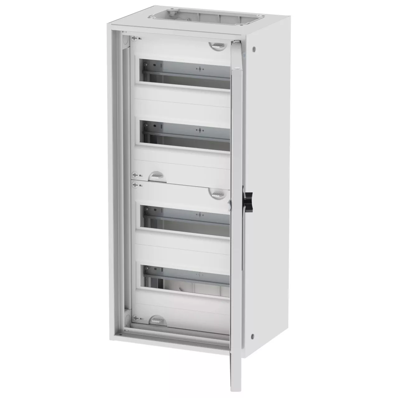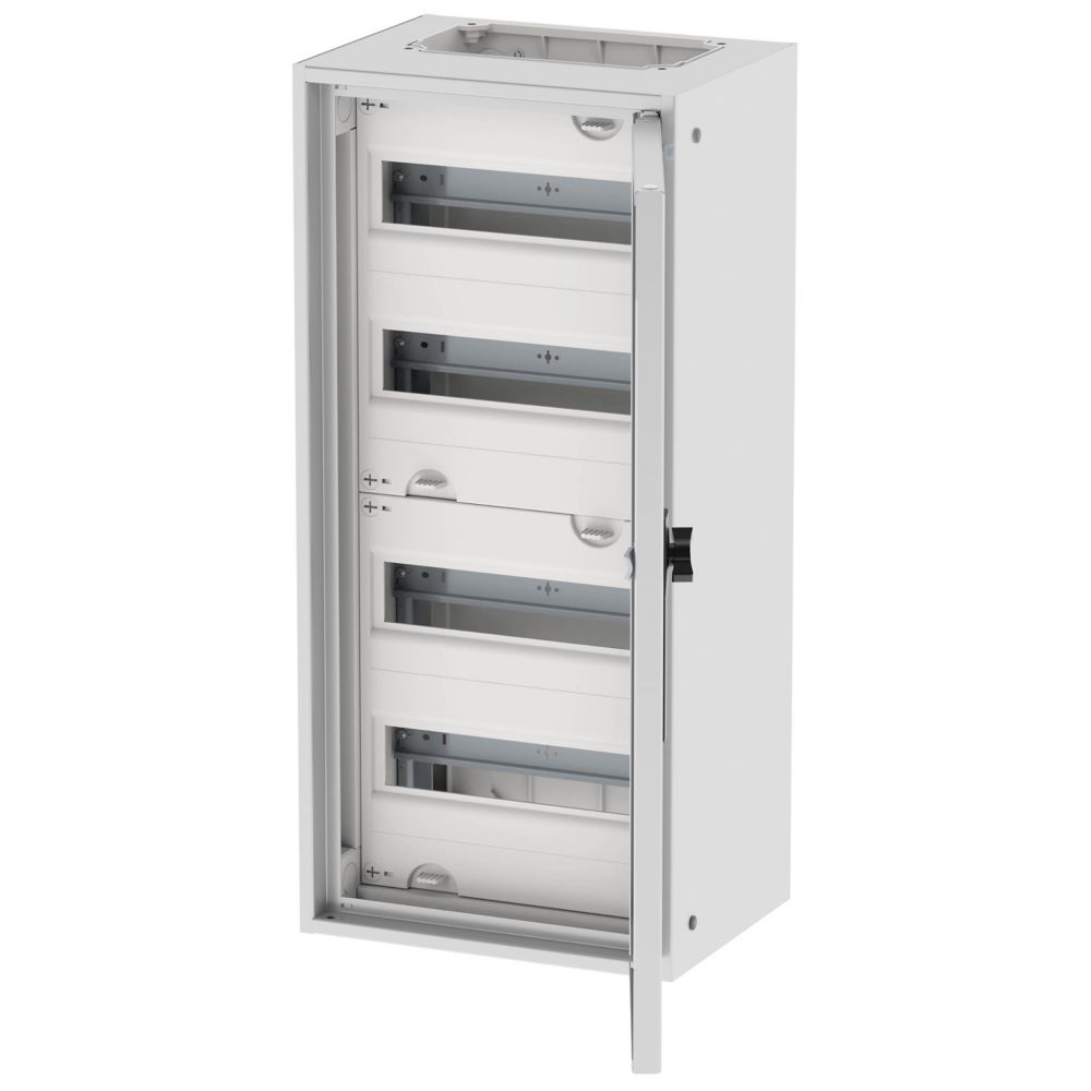 Wandgehäuse EWK inklusive Normeinbaueinheiten, 48 TE für modulare DIN-Geräte, Schutzhaube aus Kunststoff, Tragschienen aus verzinktem Qualitätsstahl, Kompakte Gehäuseabmessungen mit Tiefe von nur 230 mm, Bemessungsbetriebsstrom max. 160 A, zur Direktmontage an der Wand, IP31 Schutzart nach IEC/EN 62208, Schutzklasse 2, schutzisoliert, Verstellbare Scharniere für einfachen Wechsel des Türanschlages, sehr robust, Tür 1-flügelig, 1 Riegel, Leitungseinführung möglich per F3A-2K Flansch (nicht im Lieferumfang enthalten), inklusive N-Klemme: 1x (6x2,5–16 mm² + 21x1,5–4 mm²), inklusive PE-Klemme: 1x (6x2,5–16 mm² + 21x1,5–4 mm²), Farbe: weiß, RAL 9016