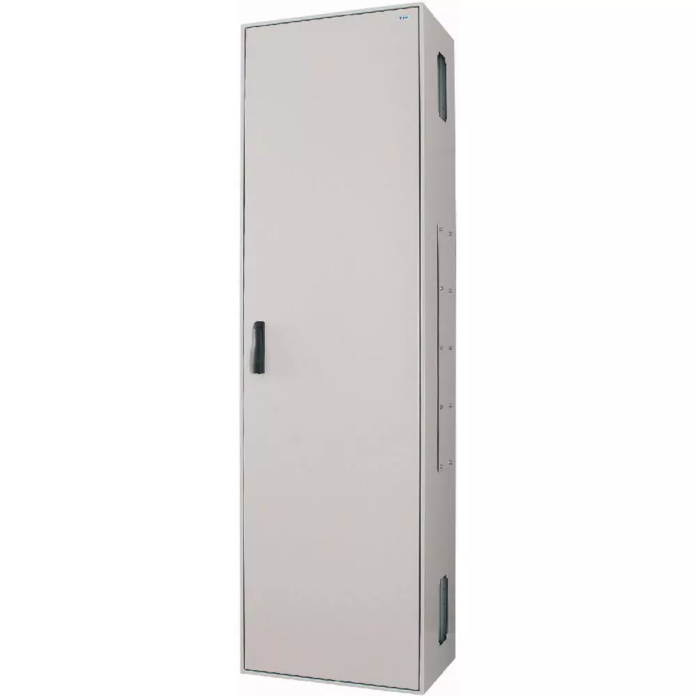 Standverteiler für Feuchträume BPM-F mit Dreipunkt-Stangenverriegelung und Schwenkhebel, IP55, anreihbar, großzügige Seitenflansche, Breite 600 mm, Außenhöhe = 1910 mm, 400 mm Tiefe; vorbereitet für EP Standardprofil-Befestigungssystem, 2 Modulbreiten = 500 mm/24SU, 12-reihig = 1800 mm Nennhöhe, geschweißtes Gehäuse; ausgezeichnete Standfestigkeit durch die verschweißte Konstruktion, hervorragend strukturiert, mehrschichtige Konstruktion für leicht zugängliche Installation, Grundrahmen – DIN-Schienen … – Gehäuse, kann als links oder rechts öffnende Tür montiert werden, offene Kabeleinführungen oben und unten, vorbereitet für F3A-Kabelschelleneinsatz; grau