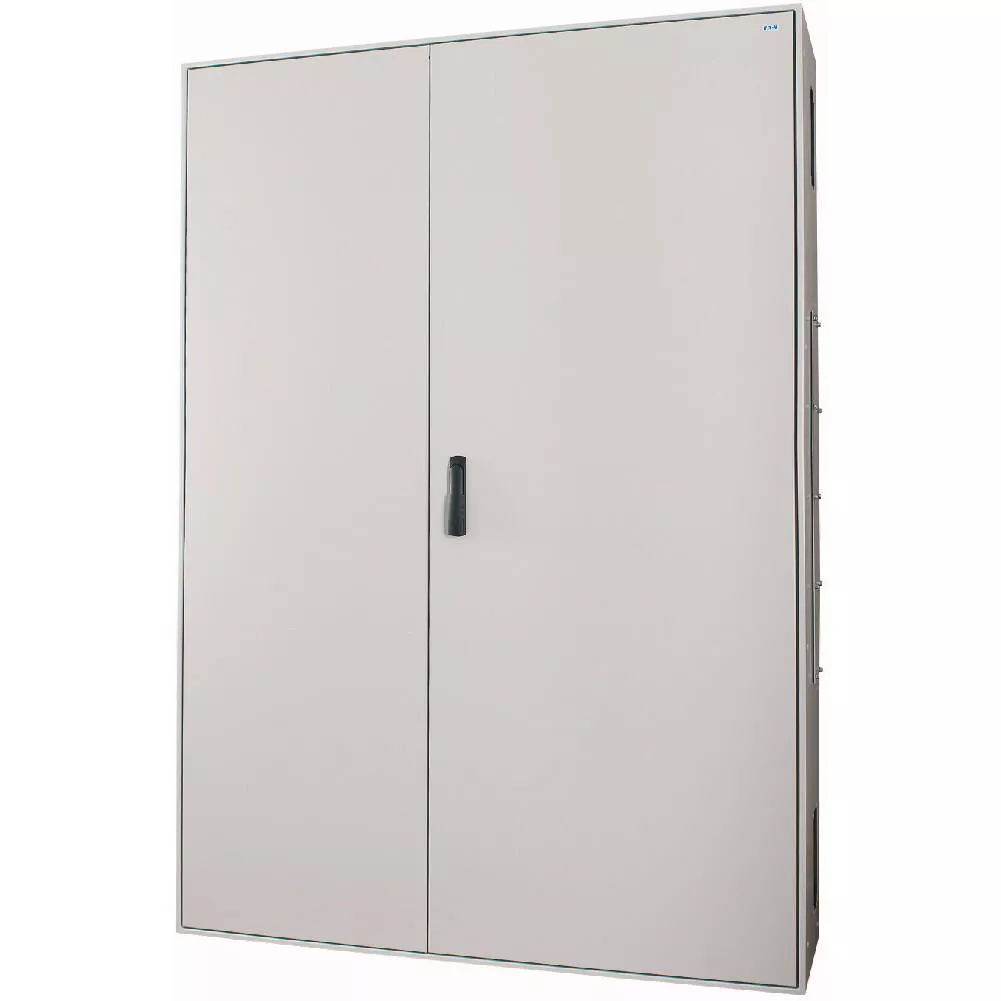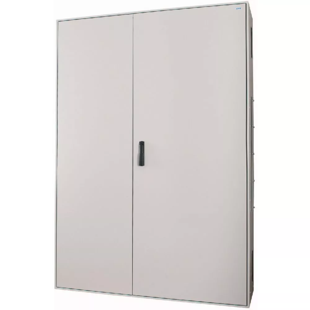Standverteiler für Feuchträume BPM-F mit Dreipunkt-Stangenverriegelung und Schwenkhebel, IP55, anreihbar, großzügige Seitenflansche, Breite 1100 mm, Außenhöhe = 1910 mm, 400 mm Tiefe; vorbereitet für EP Standardprofil-Befestigungssystem, 4 Modulbreiten = 1000 mm/48SU, 12-reihig = 1800 mm Nennhöhe, geschweißtes Gehäuse; ausgezeichnete Standfestigkeit durch die verschweißte Konstruktion, hervorragend strukturiert, mehrschichtige Konstruktion für leicht zugängliche Installation, Grundrahmen – DIN-Schienen … – Gehäuse, kann als links oder rechts öffnende Tür montiert werden, offene Kabeleinführungen oben und unten, vorbereitet für F3A-Kabelschelleneinsatz, grau