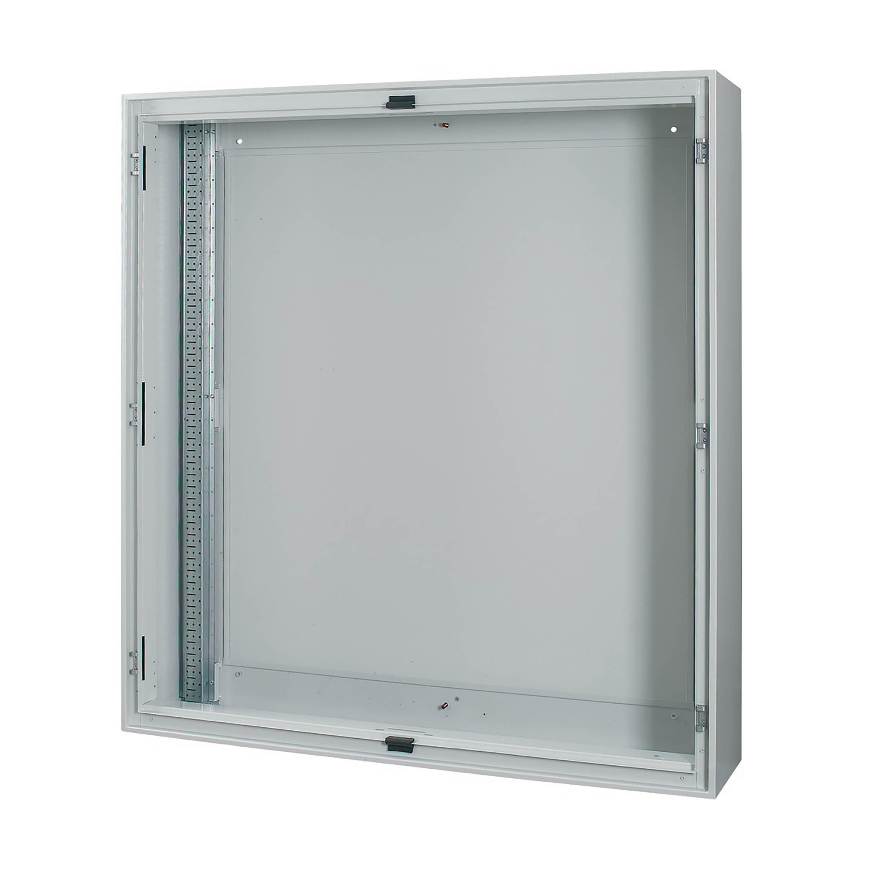 Feuchtraum-Aufputz-Installationsverteiler IP55 ohne Tür, BPM-O-...; Breite 1000 mm, Außenhöhe = 1260 mm, Frontplatte Höhe 1150 mm, Tiefe 270 mm; geschweißtes Gehäuse; geerdete Metallabdeckungen, ausgezeichnete Standfestigkeit durch die verschweißte Konstruktion, gut strukturierte, mehrschichtige Konstruktion für leicht zugängliche Installation; kann als links oder rechts öffnende Tür installiert werden; offener Kabeleinführungen oben und unten, Vorbereitet für F3A-Durchsteckflansch; variable Innenbefestigungen mit oder ohne abnehmbaren Montagerahmen; Inneninstallation mit MSW oder Befestigungstürmen möglich, bei Aufbau MSW