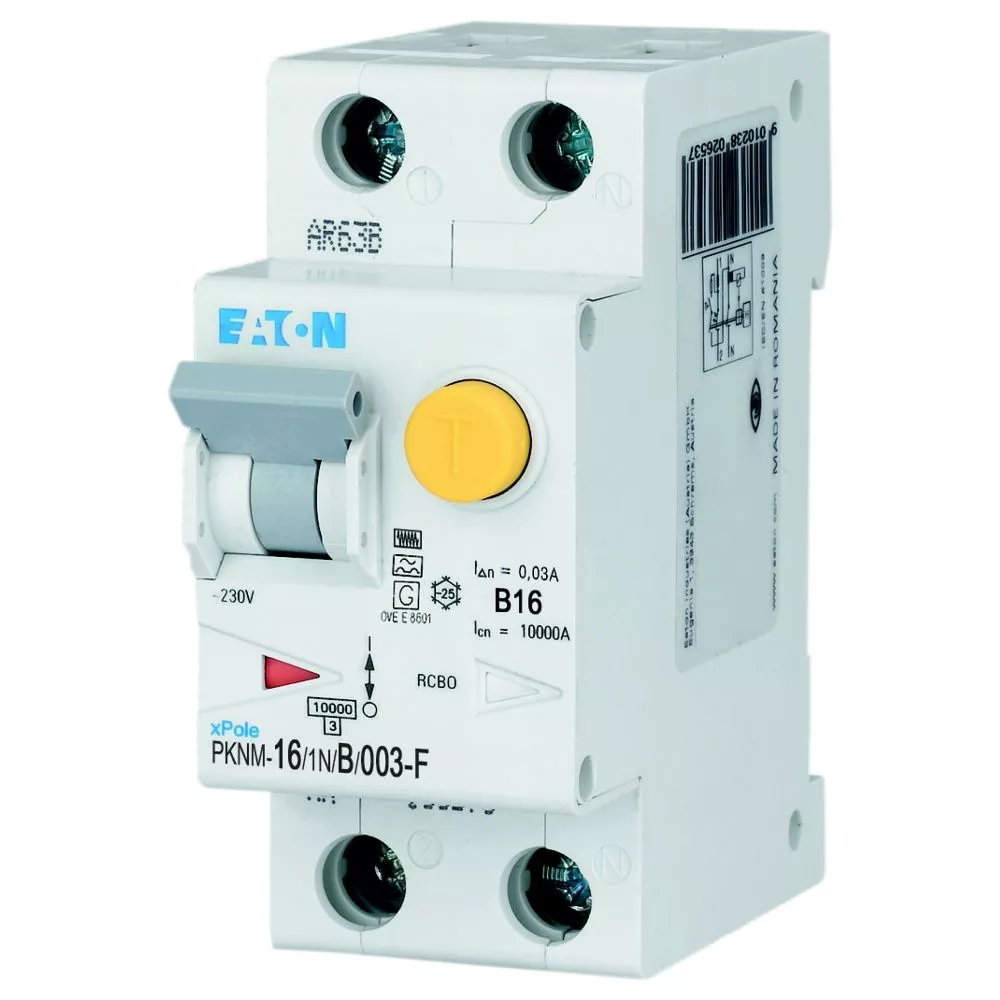 PKNM-16/1N/B/003-F-MW Wyłącznik kombinowany 10kA, In=16A, IΔN=0,03A, char. B, Typ F, 1+N bieg. Seria PKNM
