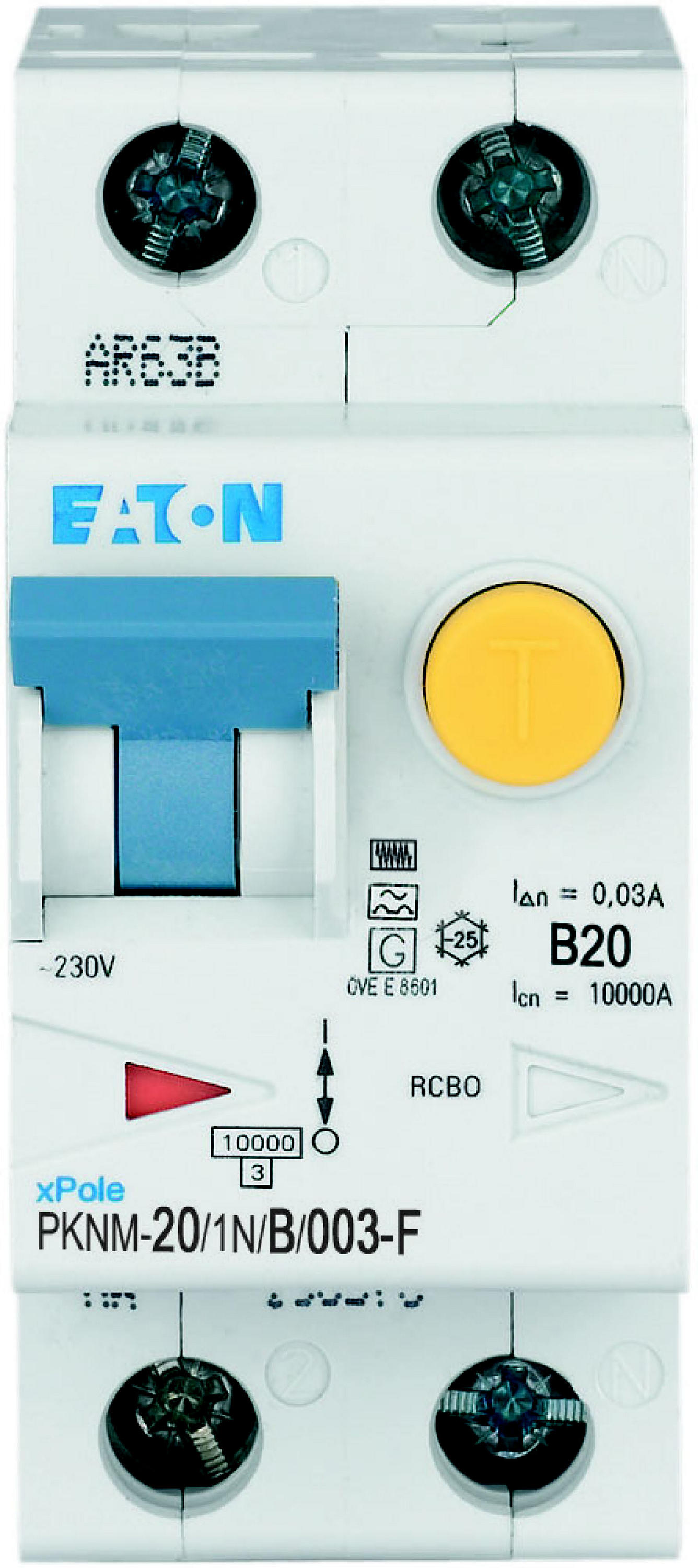 PKNM-20/1N/B/003-F-MW Wyłącznik kombinowany 10kA, In=20A, IΔN=0,03A, char. B, Typ F, 1+N bieg. Seria PKNM