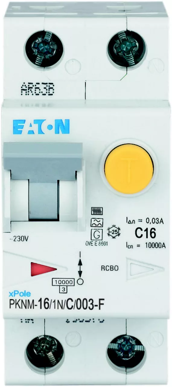 PKNM-16/1N/C/003-F-MW Wyłącznik kombinowany 10kA, In=16A, IΔN=0,03A, char. C, Typ F, 1+N bieg. Seria PKNM