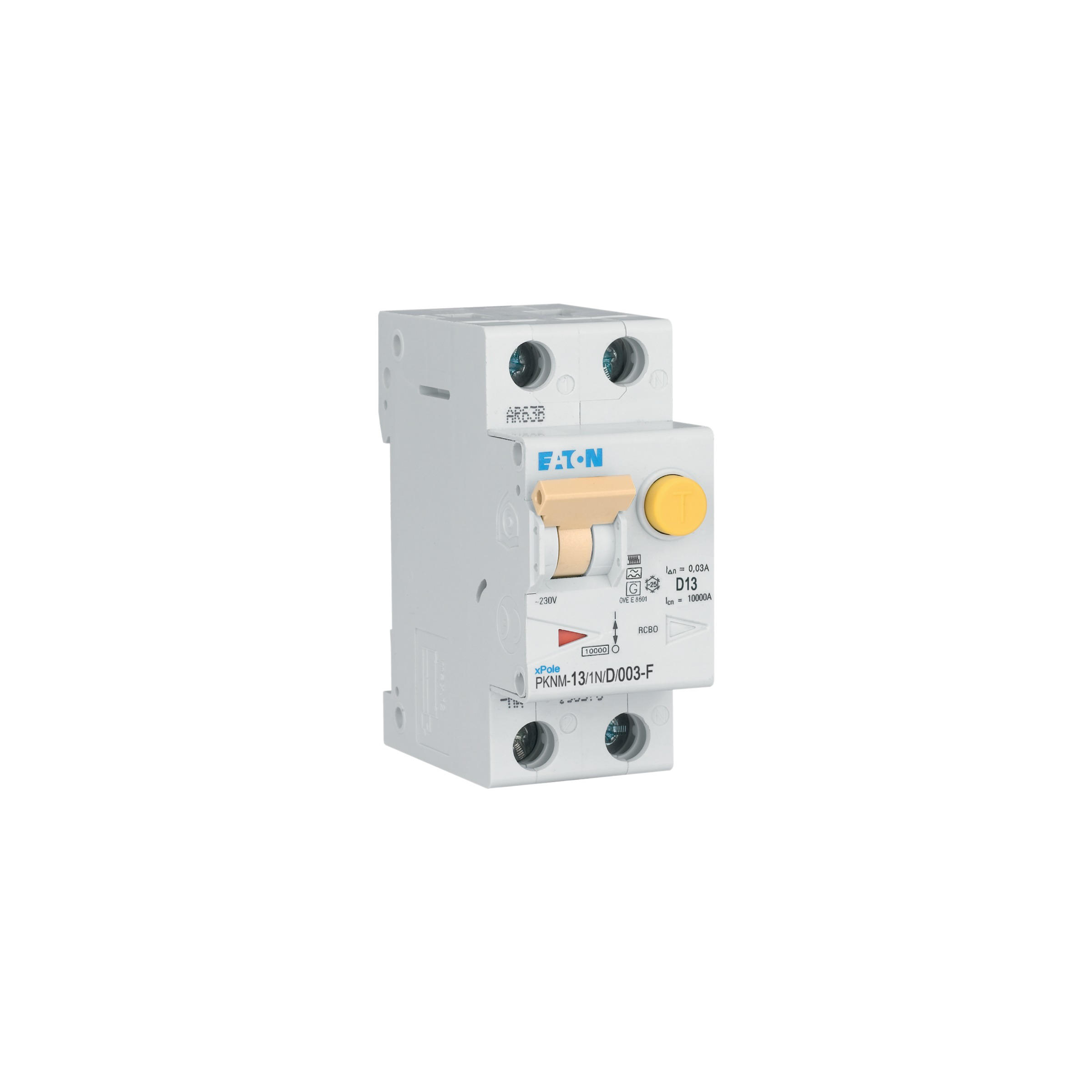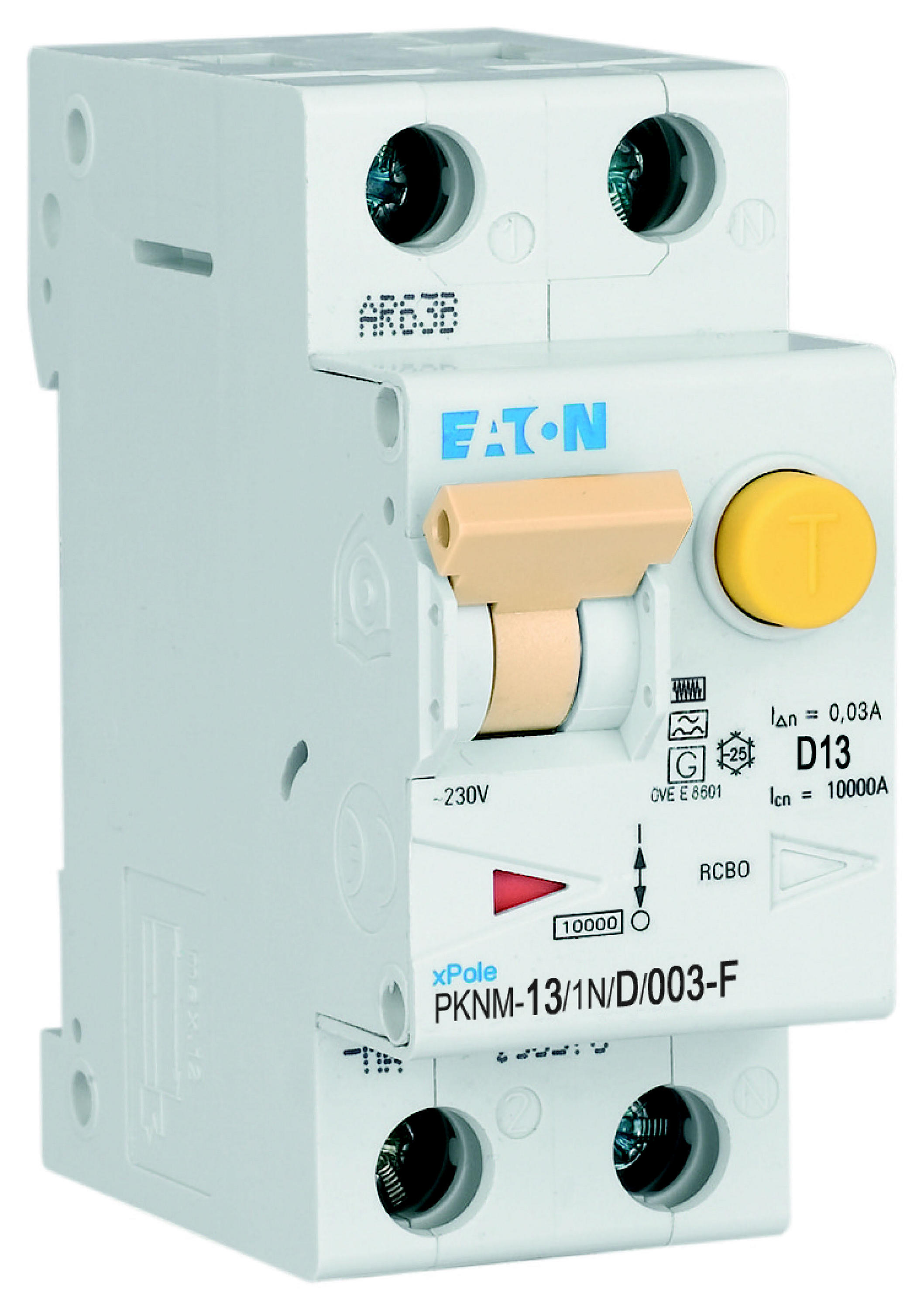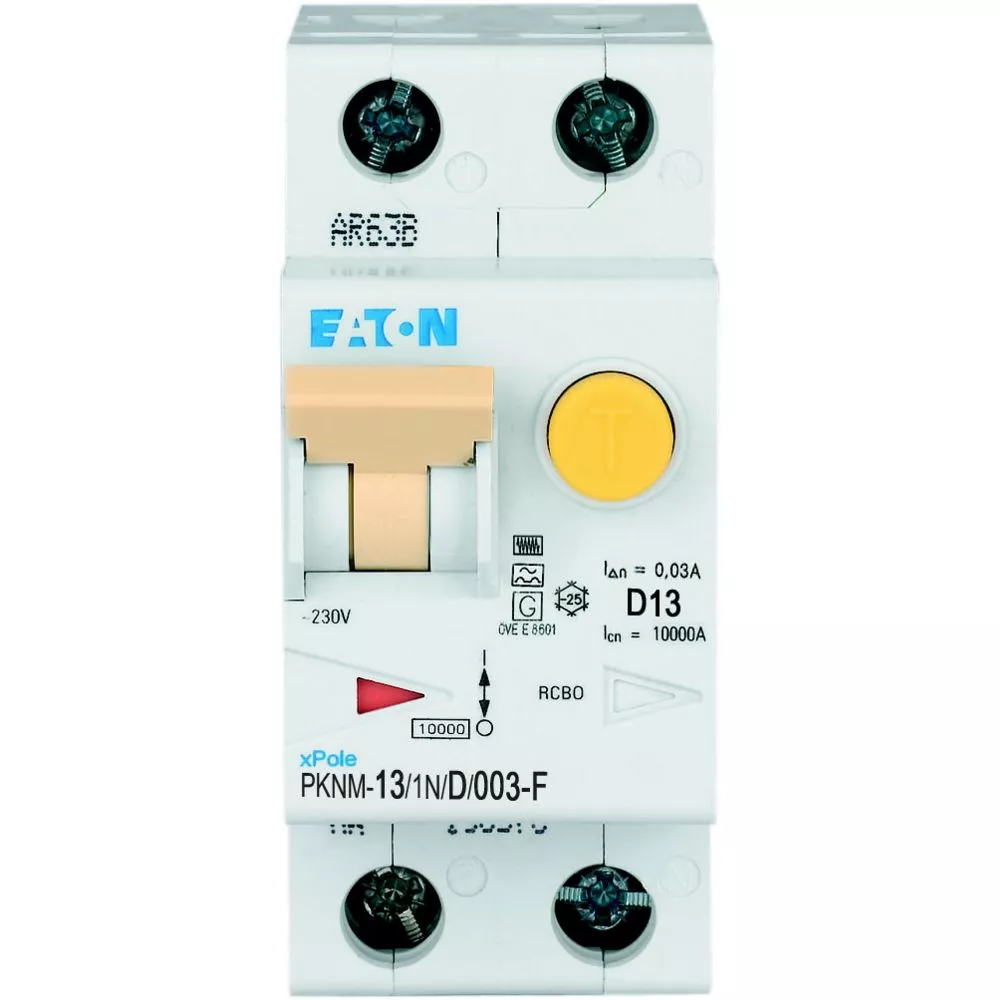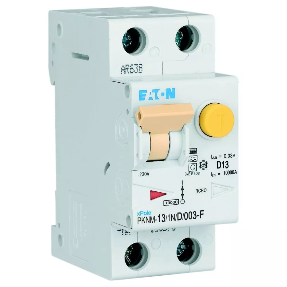 PKNM-13/1N/D/003-F-MW Wyłącznik kombinowany 10kA, In=13A, IΔN=0,03A, char. D, Typ F, 1+N bieg. Seria PKNM