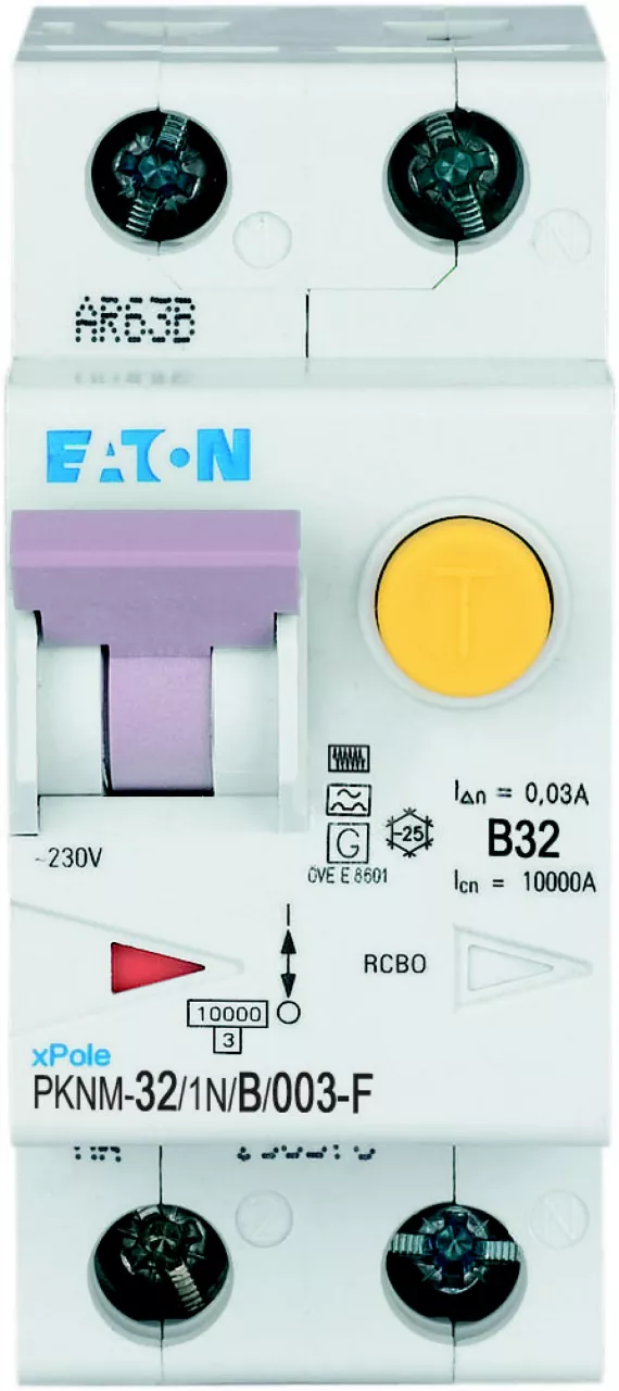 PKNM-32/1N/B/003-F-MW Wyłącznik kombinowany 10kA, In=32A, IΔN=0,03A, char. B, Typ F, 1+N bieg. Seria PKNM