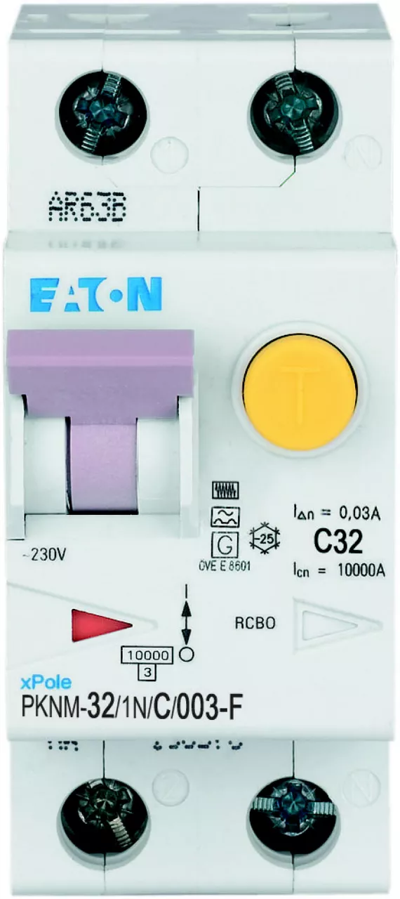 PKNM-32/1N/C/003-F-MW Wyłącznik kombinowany 10kA, In=32A, IΔN=0,03A, char. C, Typ F, 1+N bieg. Seria PKNM