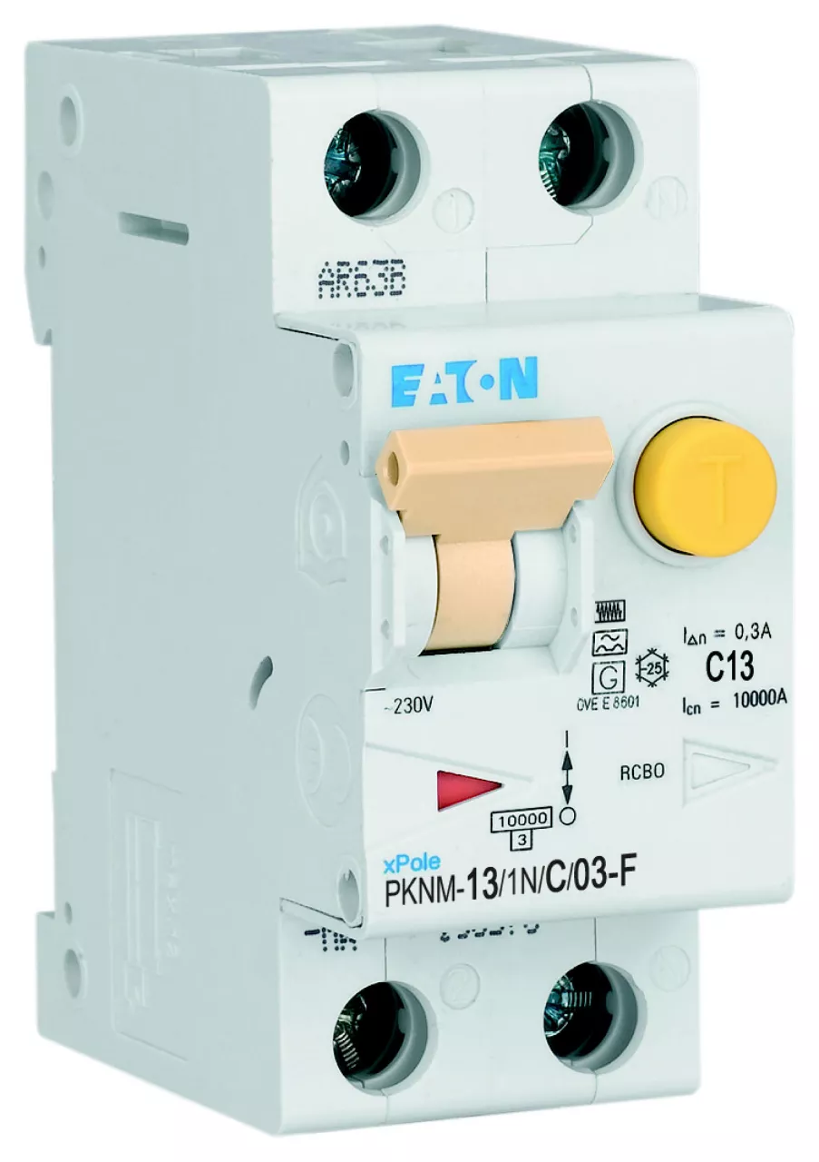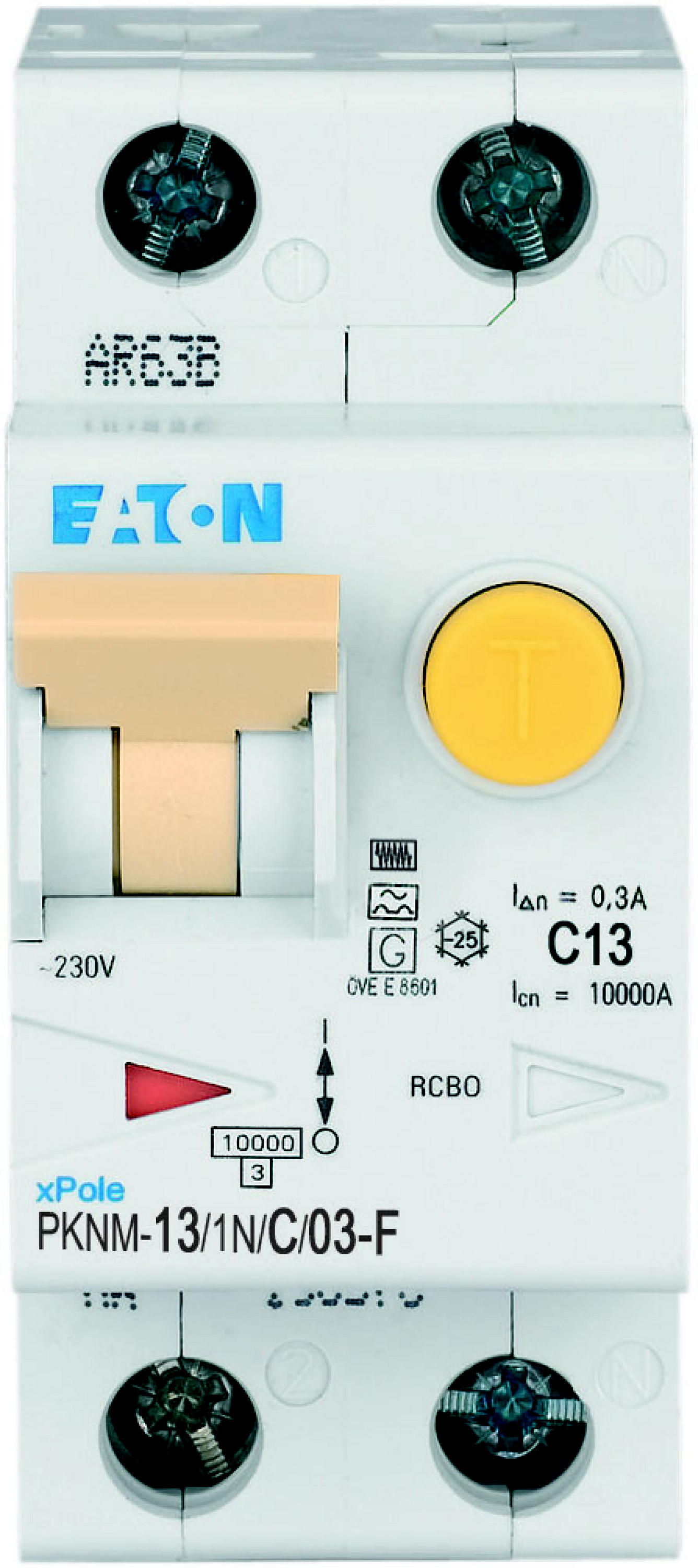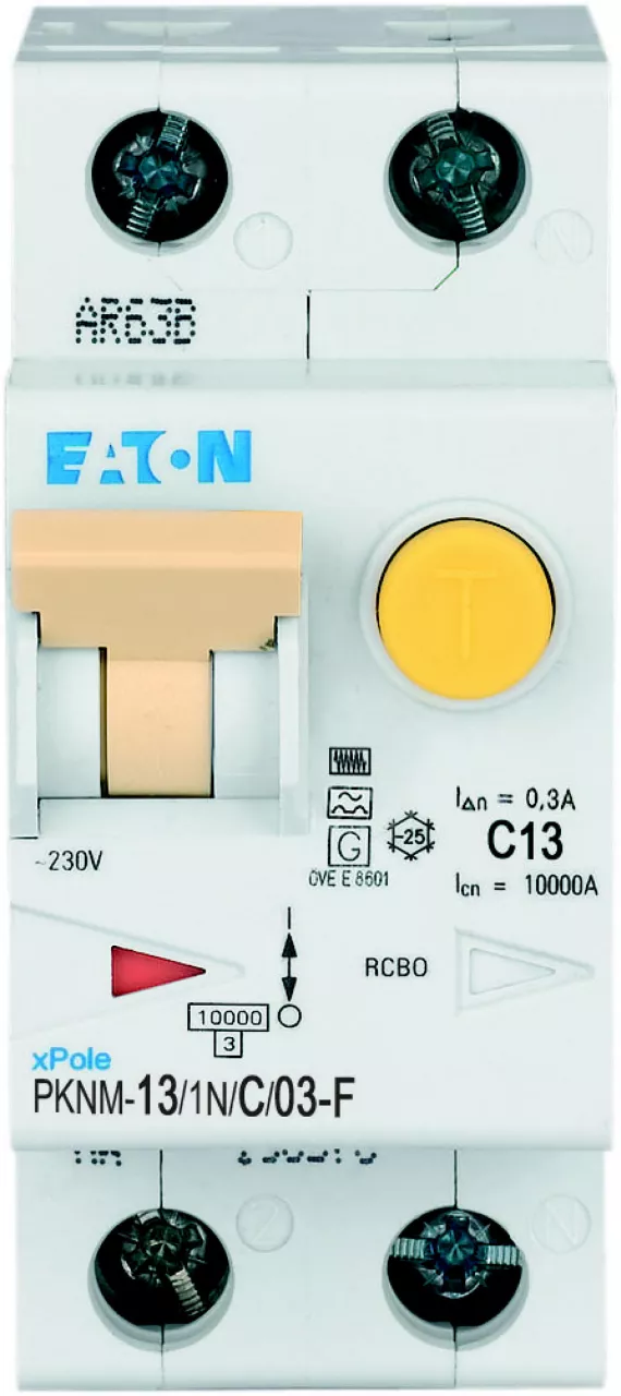 PKNM-13/1N/C/03-F-MW Wyłącznik kombinowany 10kA, In=13A, IΔN=0,3A, char. C, Typ F, 1+N bieg. Seria PKNM