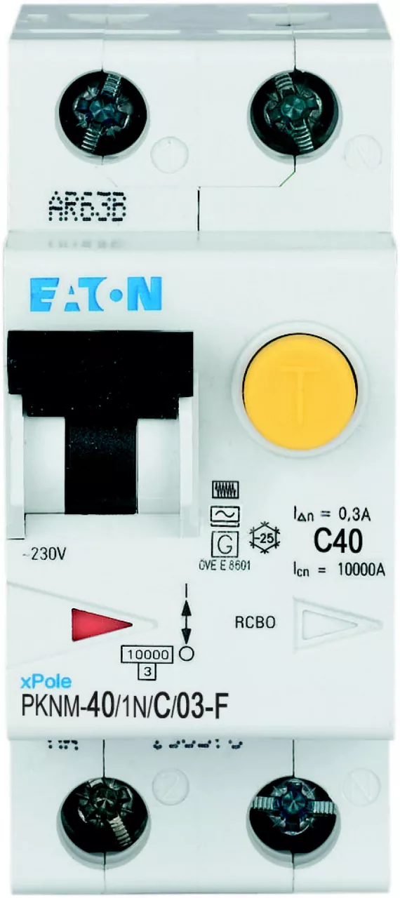 Wysokiej jakości wyłącznik różnicowoprądowy/miniaturowy z zabezpieczeniem nadprądowym niezależnym od napięcia sieciowego; wskaźnik położenia styku czerwono-zielony; zabezpieczenie zacisków z tyłu; potrójny zatrzask ślizgowy z możliwością demontażu z istniejącego zespołu zamykającego; możliwość doposażenia w dużą gamę akcesoriów; szeroki zakres znamionowych prądów różnicowych; znamionowe prądy robocze do 40 A; wyzwalanie typu B, C, D; znamionowa zdolność łączeniowa 10 kA; możliwość stosowania na zewnątrz (zasilanie na miejscu i rozdzielnica zewnętrzna) do -25°C; możliwość stosowania na zewnątrz (zasilanie na miejscu i rozdzielnica zewnętrzna) do -25°C