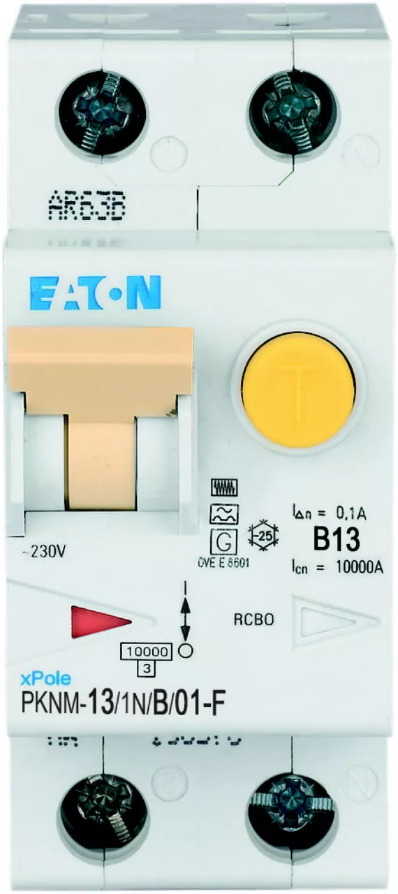 PKNM-13/1N/B/01-F-MW Wyłącznik kombinowany 10kA, In=13A, IΔN=0,1A, char. B, Typ F, 1+N bieg. Seria PKNM