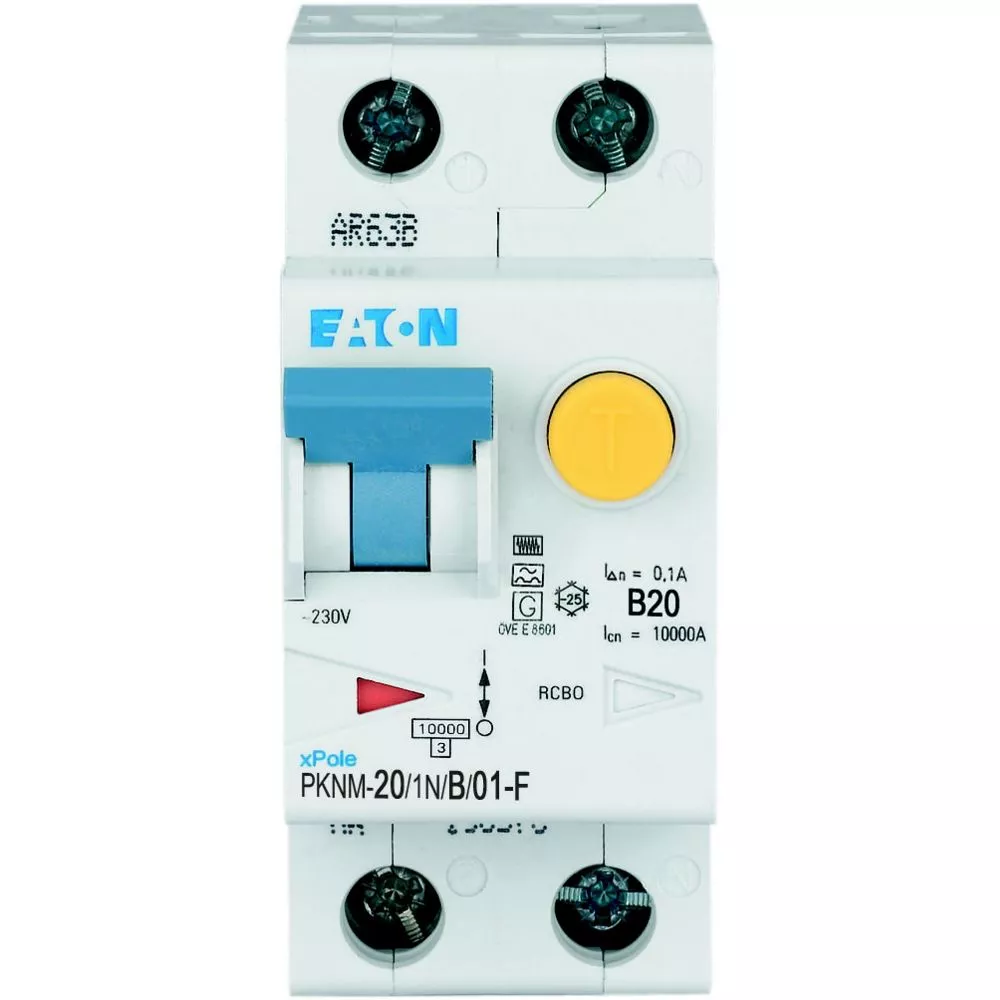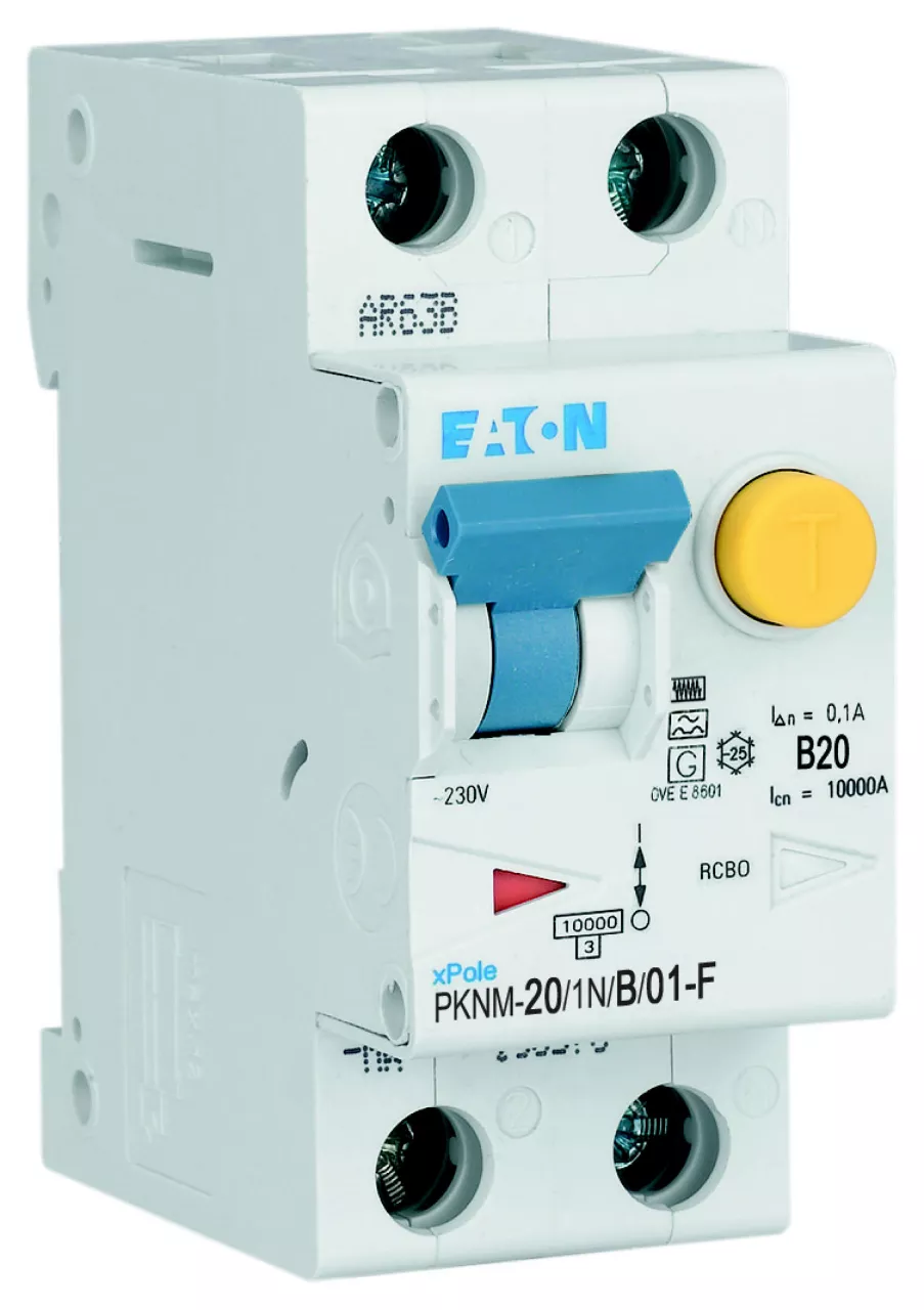 PKNM-20/1N/B/01-F-MW Wyłącznik kombinowany 10kA, In=20A, IΔN=0,1A, char. B, Typ F, 1+N bieg. Seria PKNM