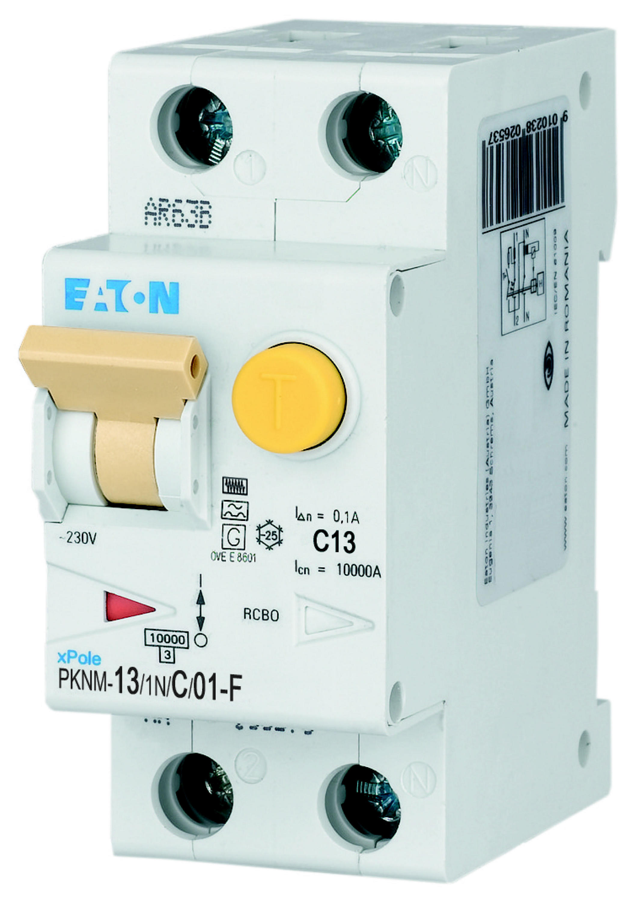 PKNM-13/1N/C/01-F-MW Wyłącznik kombinowany 10kA, In=13A, IΔN=0,1A, char. C, Typ F, 1+N bieg. Seria PKNM