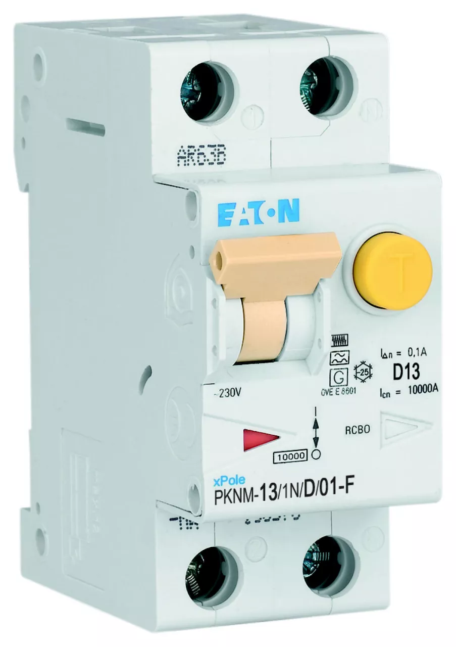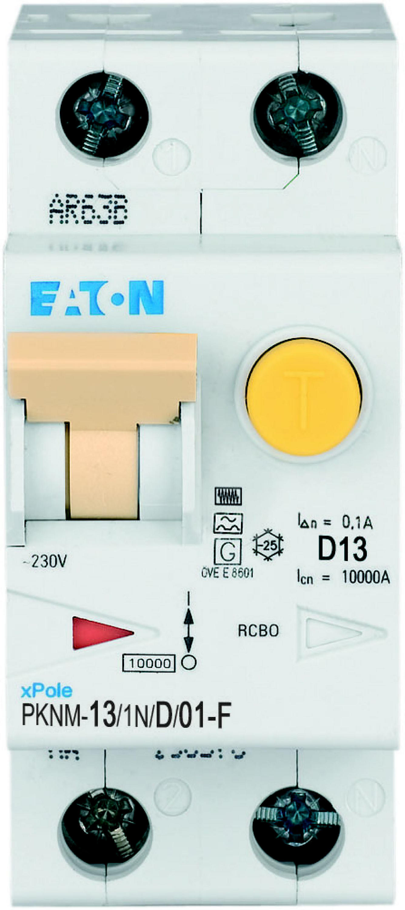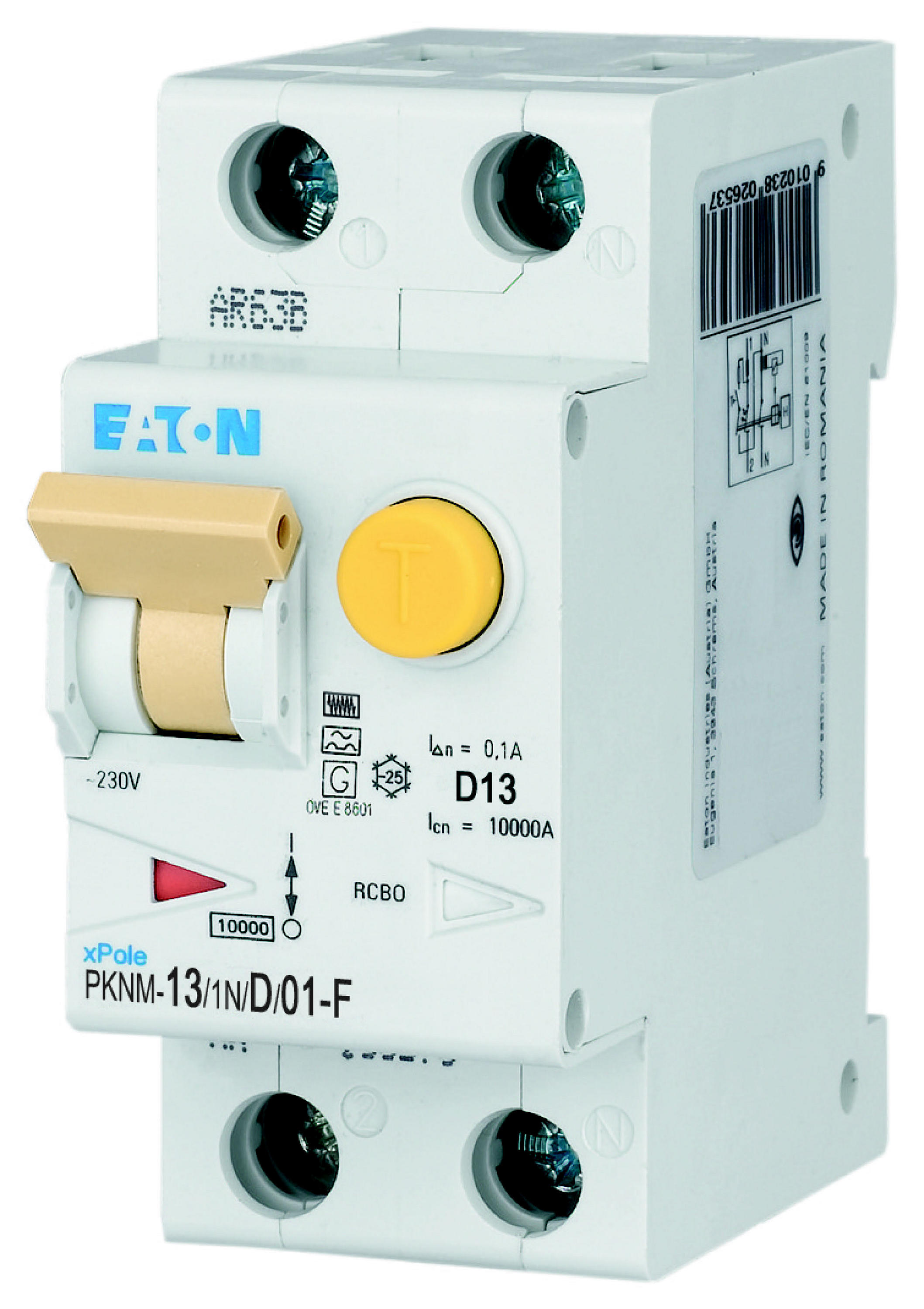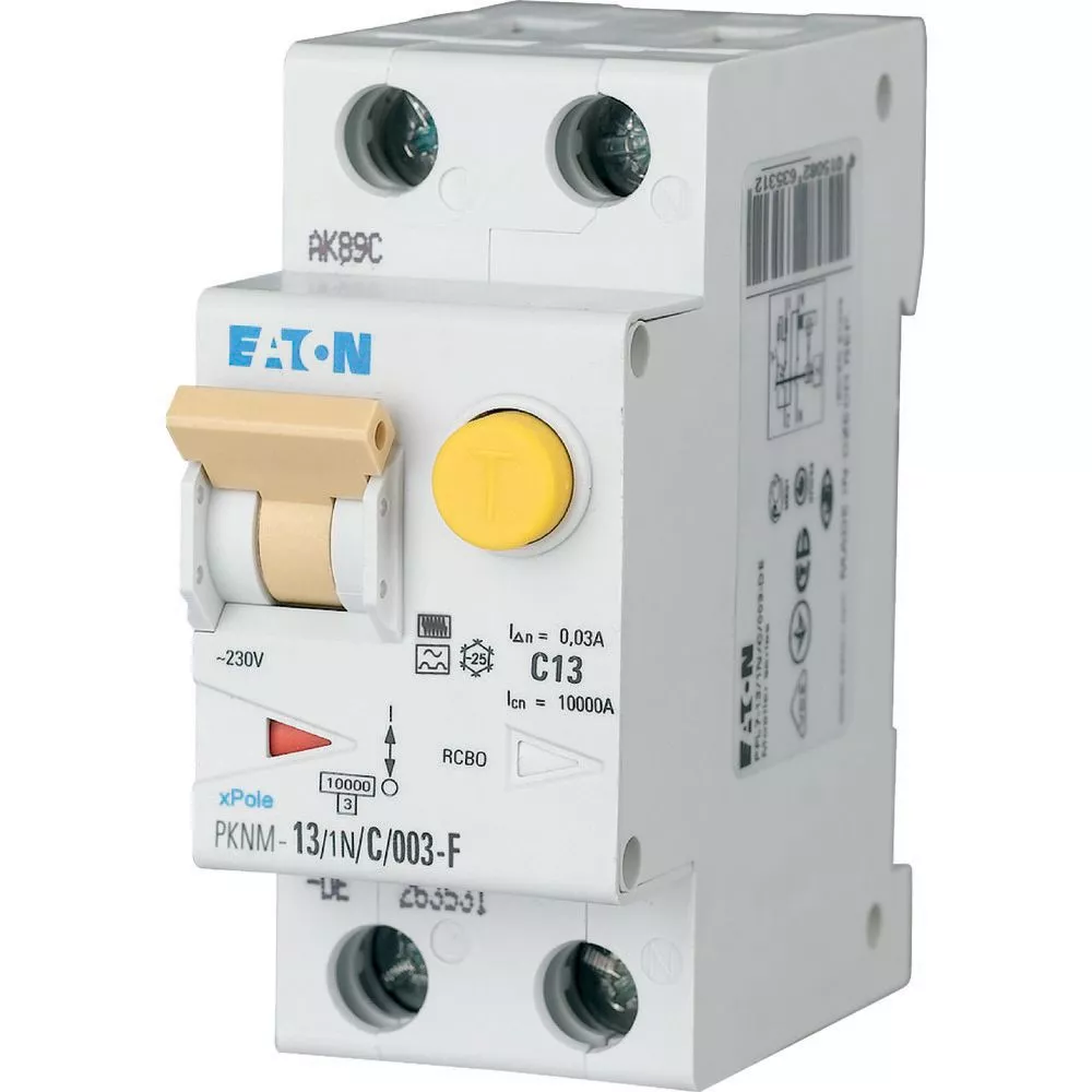 PKNM-13/1N/D/01-F-MW Wyłącznik kombinowany 10kA, In=13A, IΔN=0,1A, char. D, Typ F, 1+N bieg. Seria PKNM