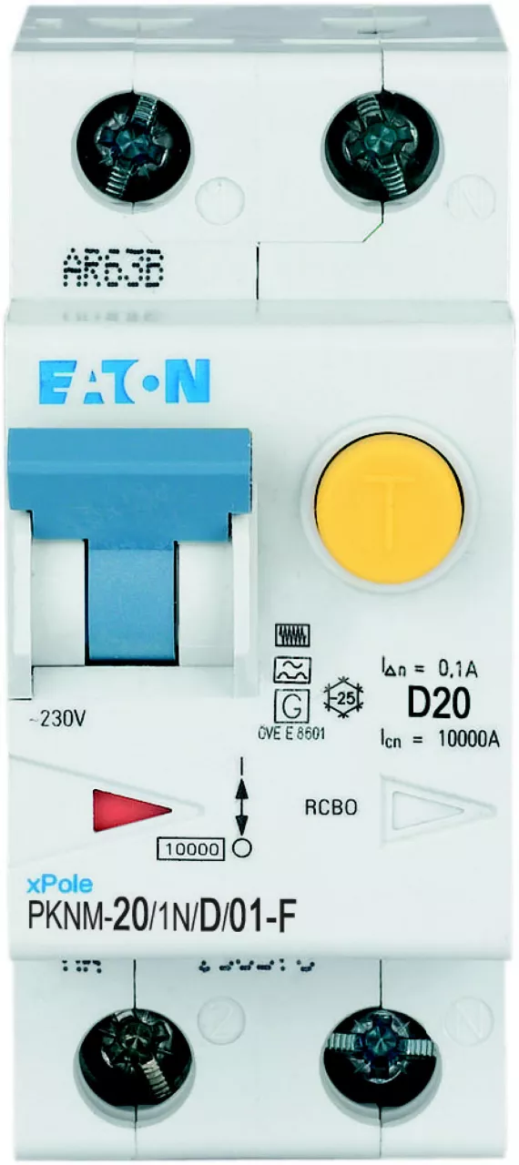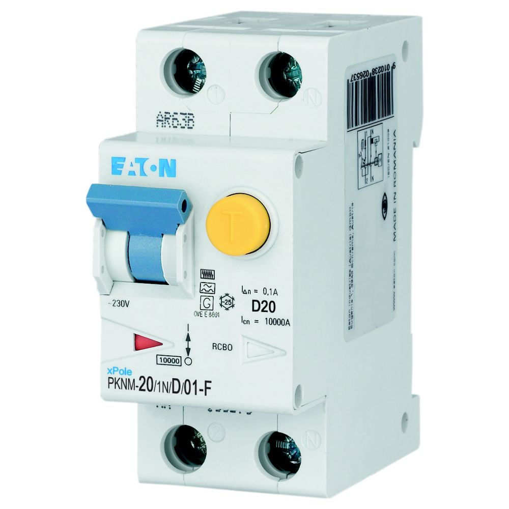 PKNM-20/1N/D/01-F-MW Wyłącznik kombinowany 10kA, In=20A, IΔN=0,1A, char. D, Typ F, 1+N bieg. Seria PKNM