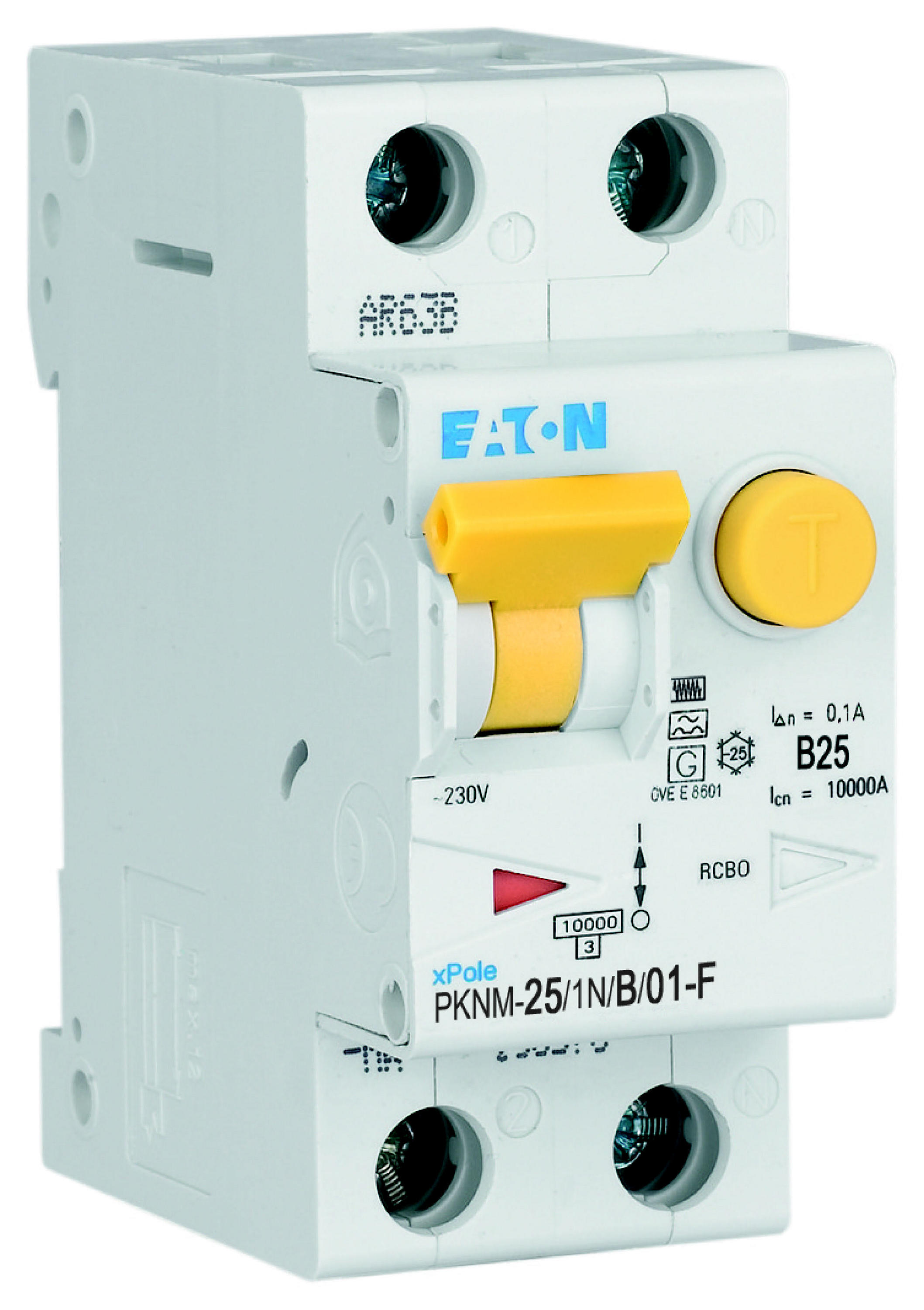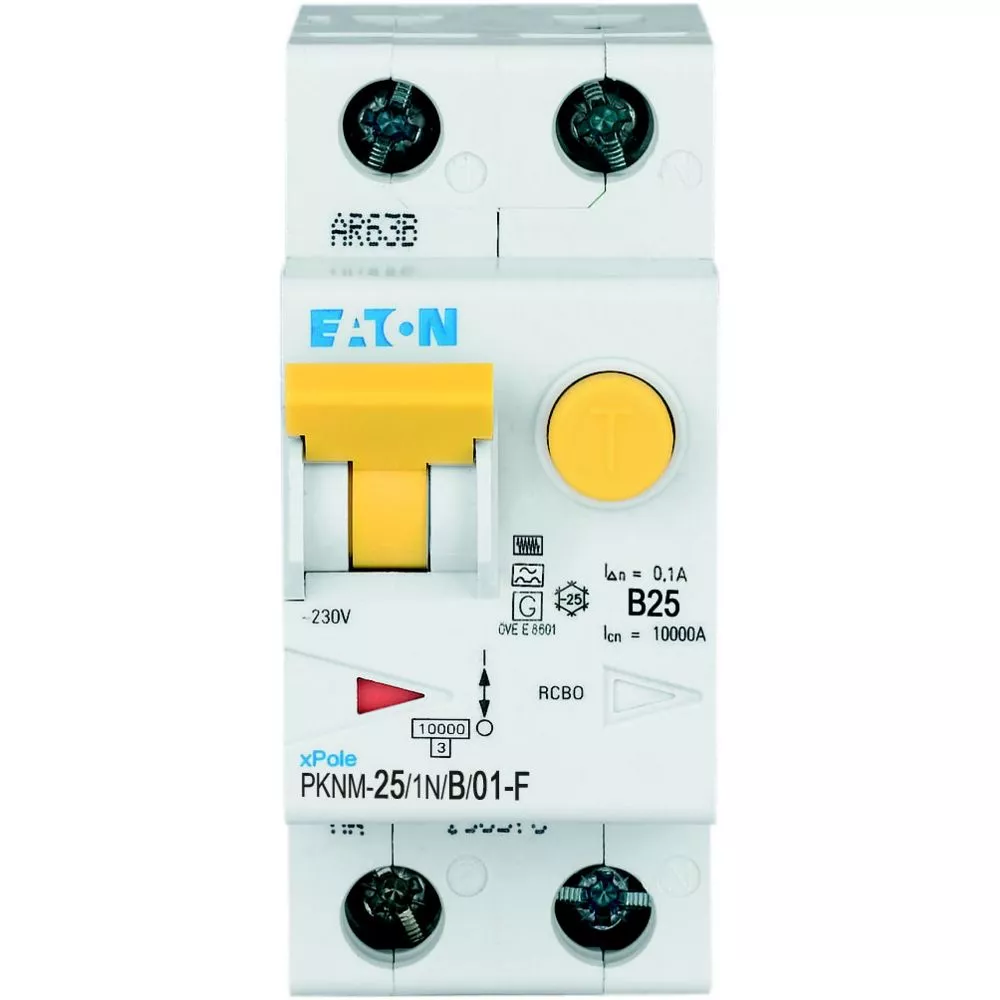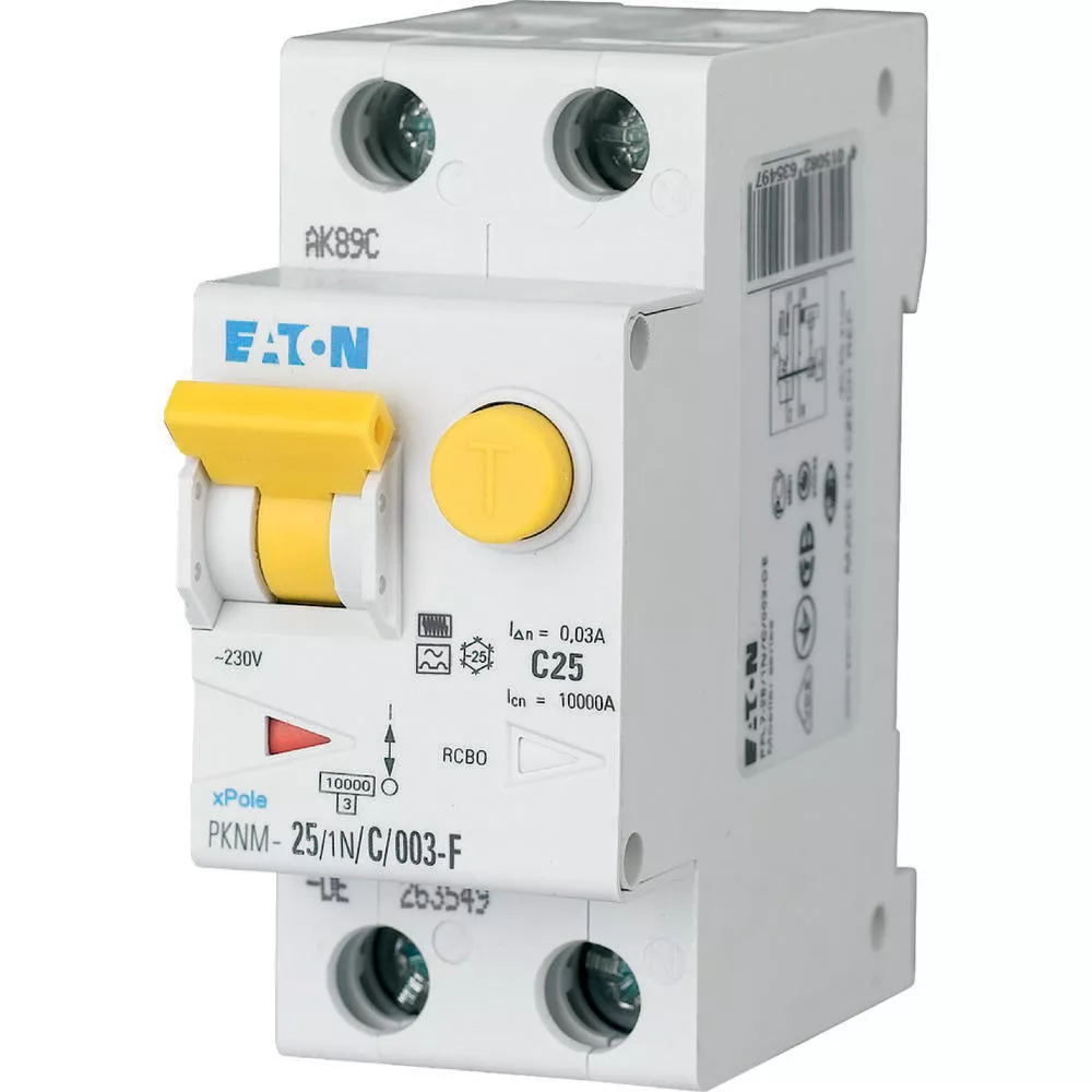 PKNM-25/1N/B/01-F-MW Wyłącznik kombinowany 10kA, In=25A, IΔN=0,1A, char. B, Typ F, 1+N bieg. Seria PKNM