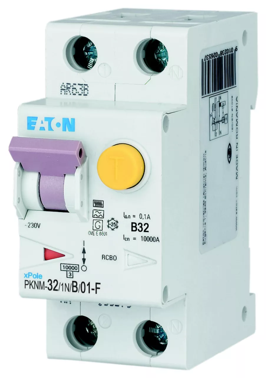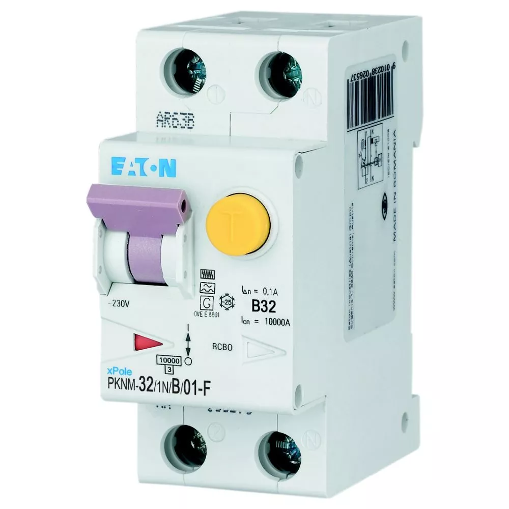PKNM-32/1N/B/01-F-MW Wyłącznik kombinowany 10kA, In=32A, IΔN=0,1A, char. B, Typ F, 1+N bieg. Seria PKNM