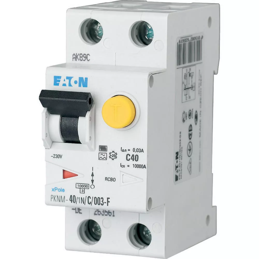 PKNM-40/1N/B/01-F-MW Wyłącznik kombinowany 10kA, In=32A, IΔN=0,1A, char. B, Typ F, 1+N bieg. Seria PKNM