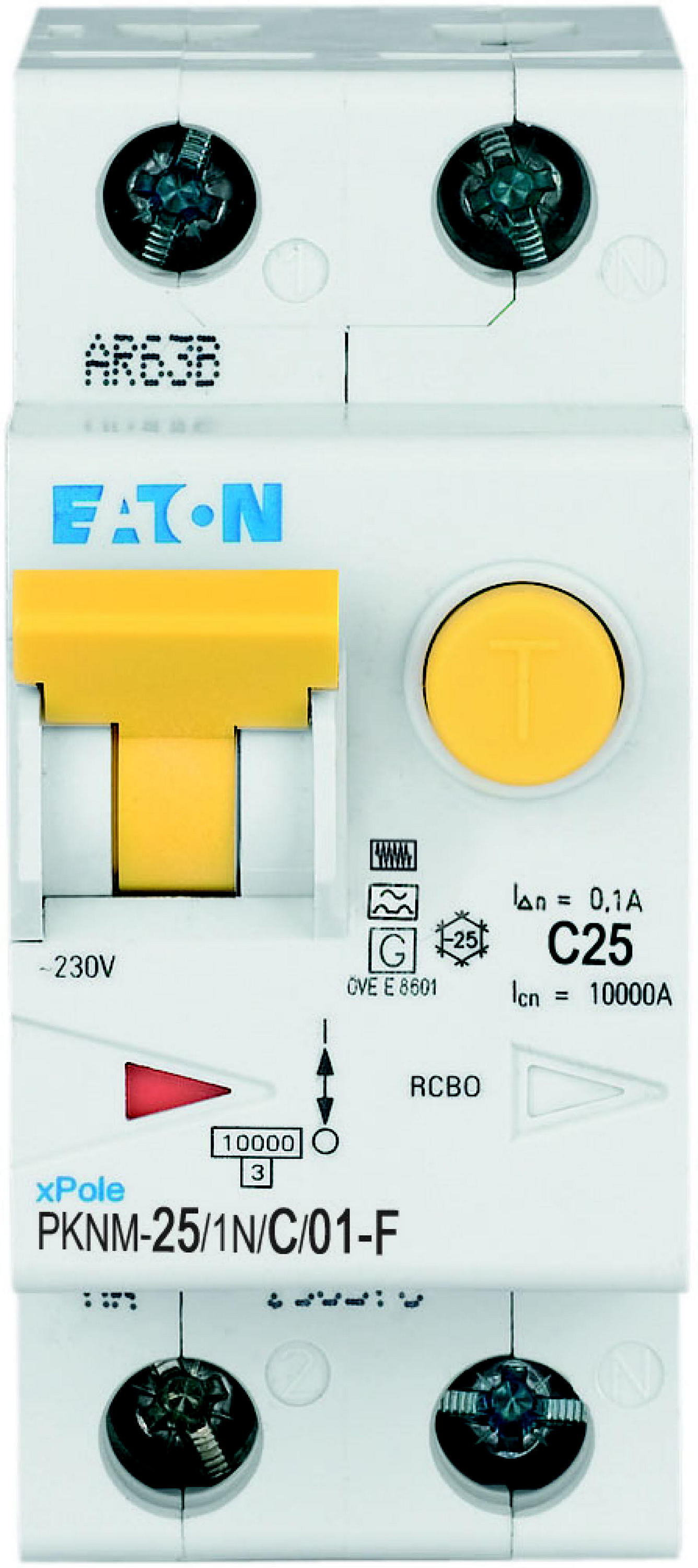 PKNM-25/1N/C/01-F-MW Wyłącznik kombinowany 10kA, In=25A, IΔN=0,1A, char. C, Typ F, 1+N bieg. Seria PKNM
