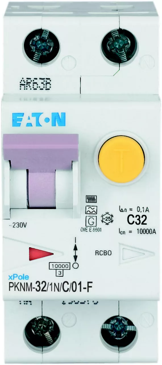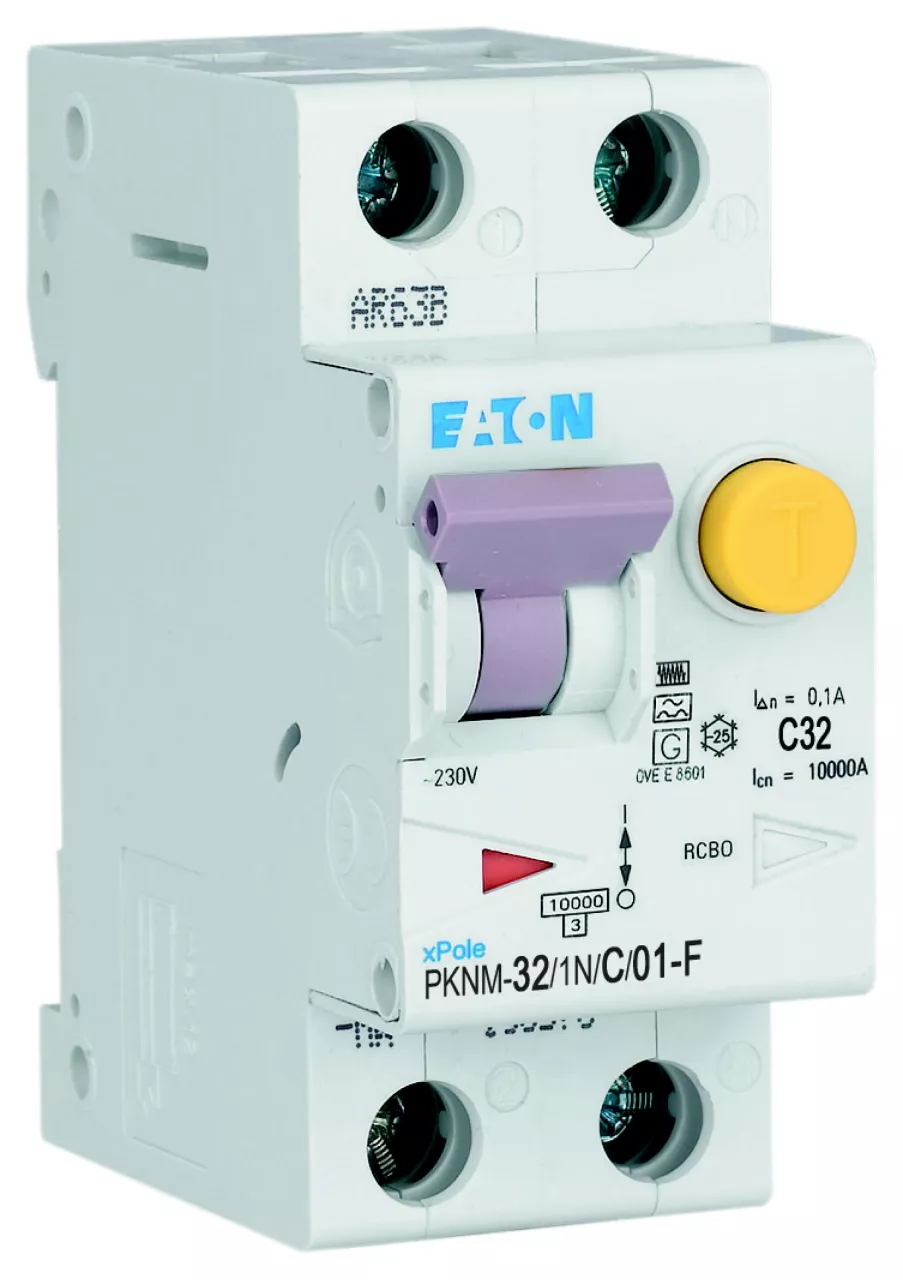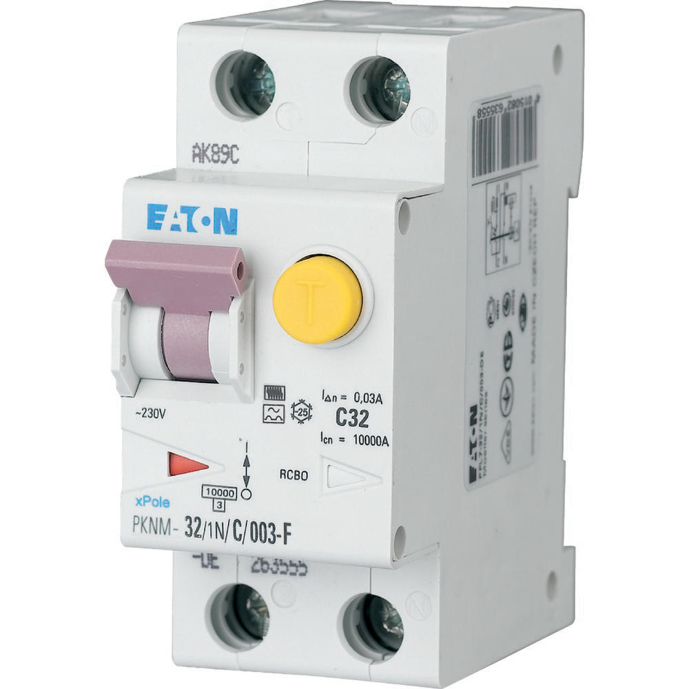 PKNM-32/1N/C/01-F-MW Wyłącznik kombinowany 10kA, In=32A, IΔN=0,1A, char. C, Typ F, 1+N bieg. Seria PKNM
