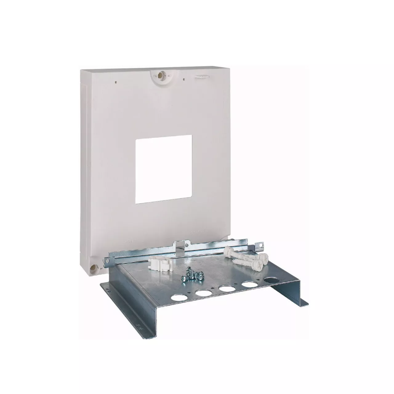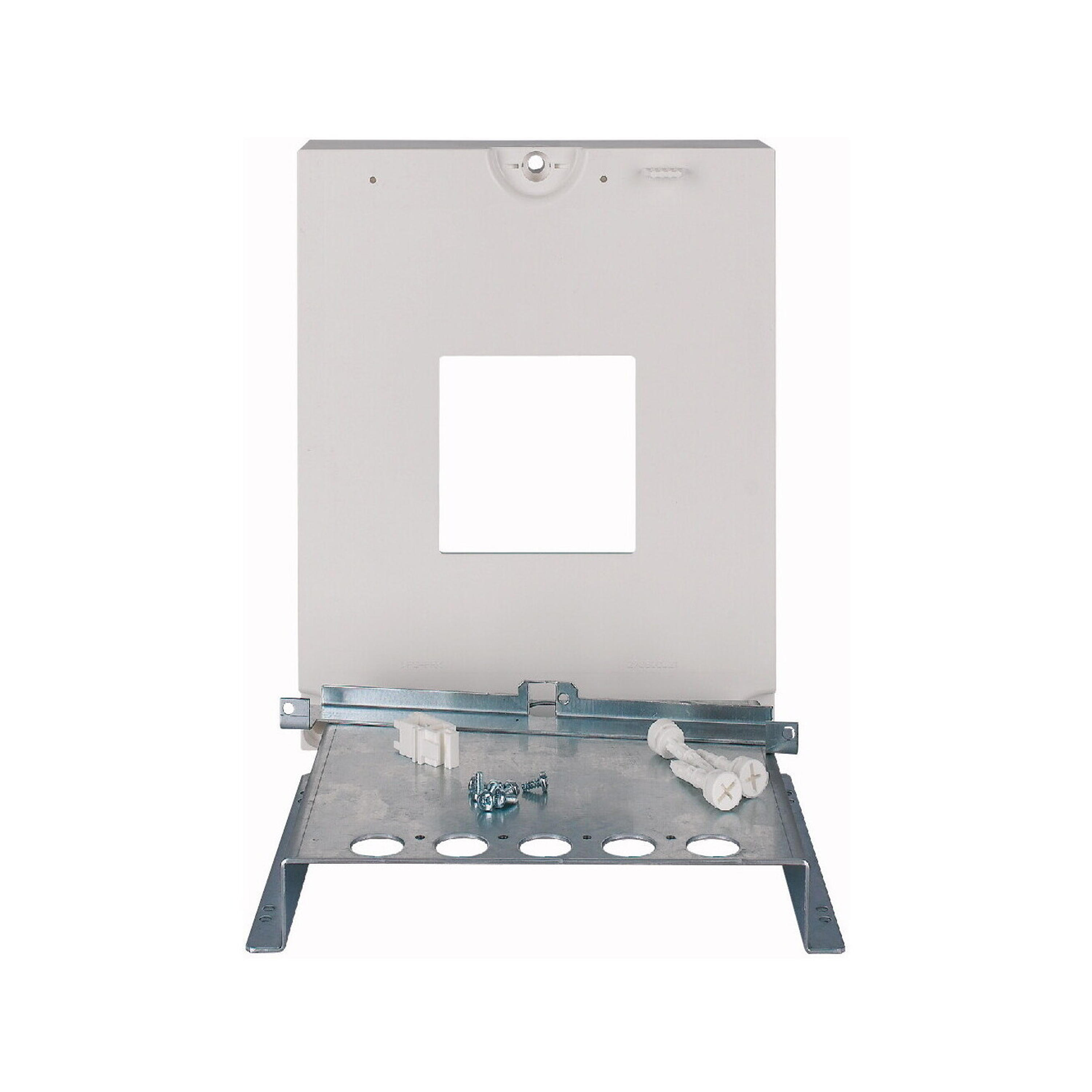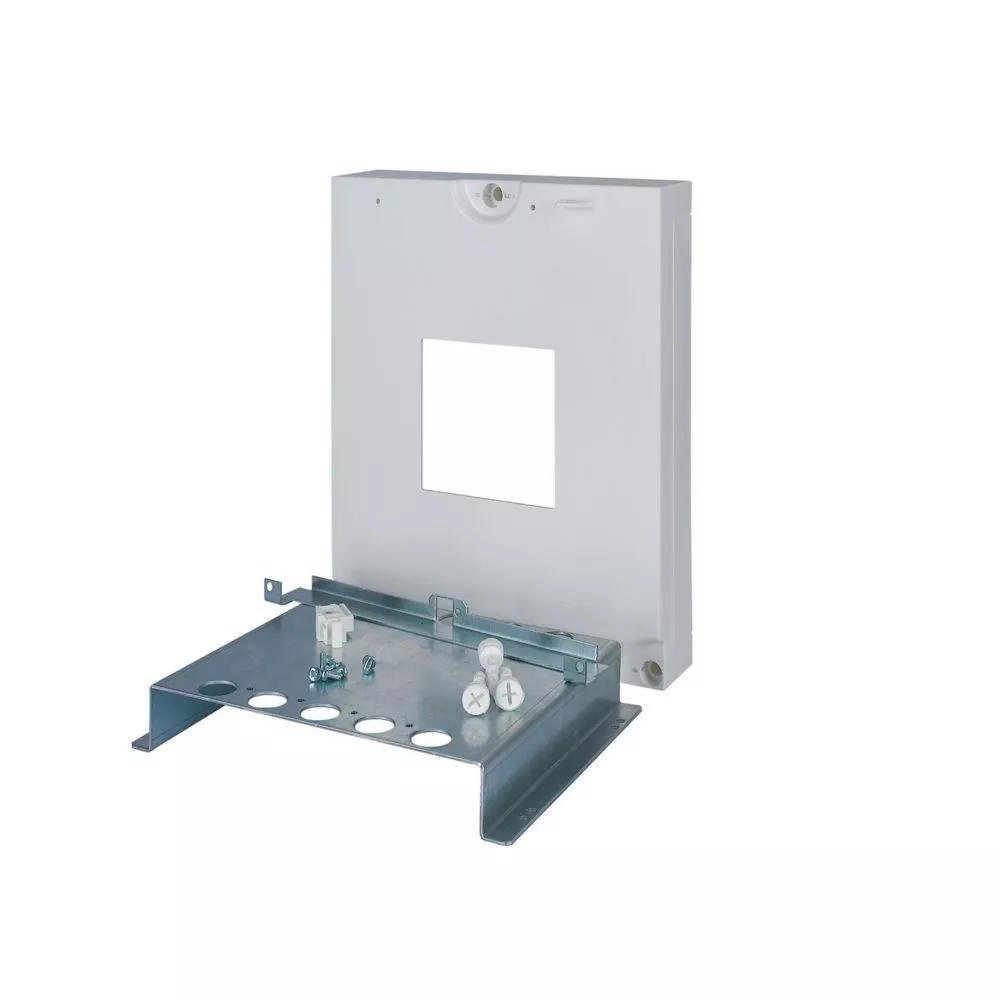 Montagesatz EWK-NZM2-KIT bestehend aus universeller Montageplatte 1x NZM2 (3-polig) und Blindflansch, für NZM – Leistungsschalter Größe 2 bis einschließlich 250 A; Blindflansch aus Kunststoff RAL 9016; geeignet für EWK-Gehäuse der Schutzklasse II