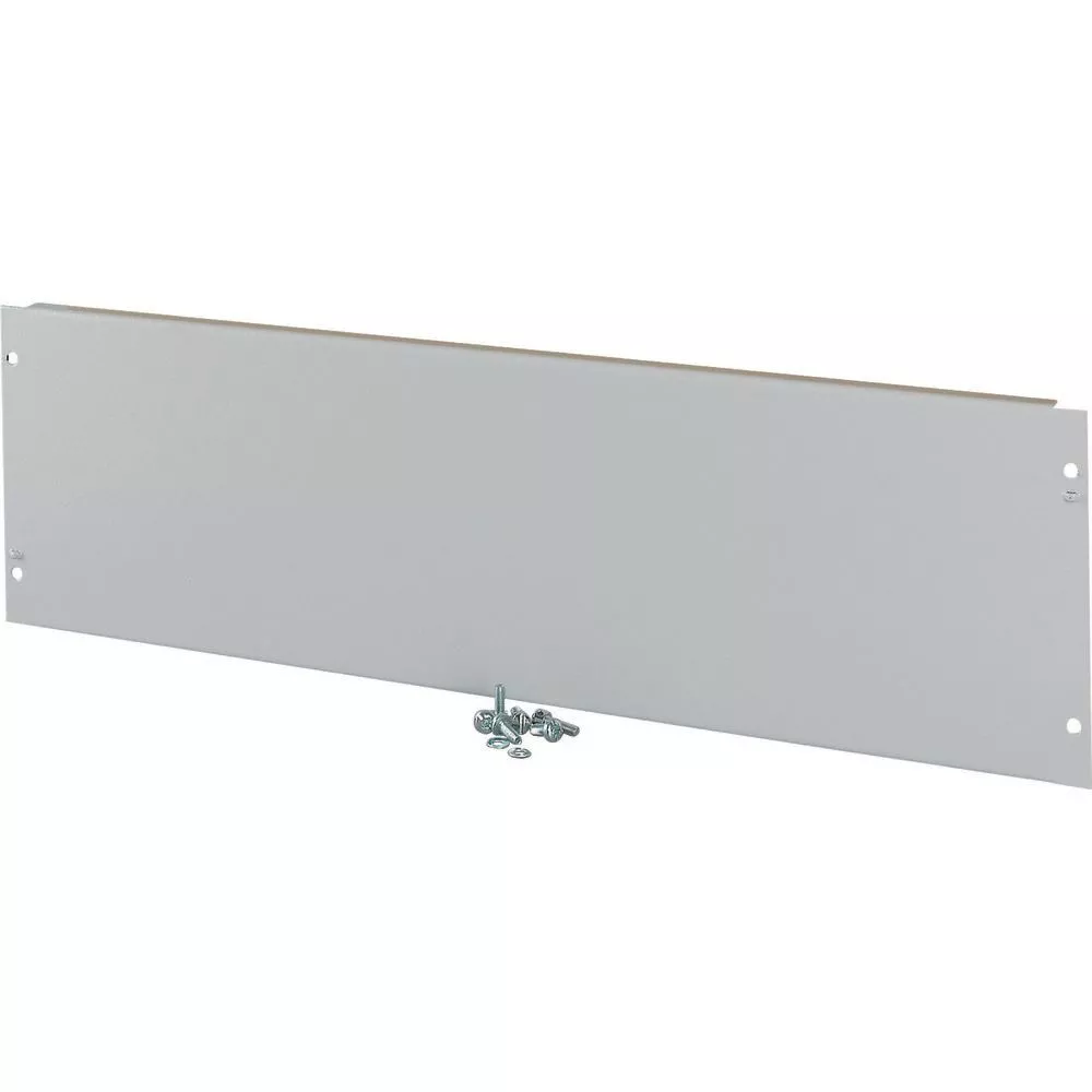 Installations-Verteiler-System – Profi Plus (Standverteiler, Aufputz- und Unterputzverteiler). Frontblindplatte, BPZ-FP-..-BL, wird zur Abdeckung von Reserveflächen und zum Schutz von ungenutzten Bereichen benötigt Breite 600 mm, Höhe 100 mm, Stahlblech, pulverbeschichtet, RAL7035, Metallfrontplatte mit elektrischem Kontakt mit Gehäuse, Lieferumfang: 1 Frontplatte