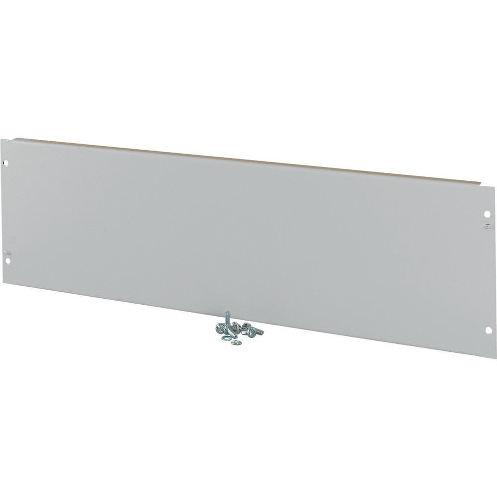 Installations-Verteiler-System – Profi Plus (Standverteiler, Aufputz- und Unterputzverteiler). Frontblindplatte, BPZ-FP-..-BL, wird zur Abdeckung von Reserveflächen und zum Schutz von ungenutzten Bereichen benötigt Breite 600 mm, Höhe 200 mm, Stahlblech, pulverbeschichtet, RAL7035, Metallfrontplatte mit elektrischem Kontakt mit Gehäuse, Lieferumfang: 1 Frontplatte