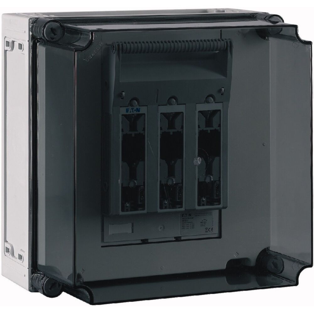 NH-Verteilerschrank mit transparentem Deckel, 1x Schaltanlage NH1 auf Sammelschienensystem 400 A, 3-polig, Träger inklusive für N+PE zum Nachrüsten, mit Kupferschienen L1/L2/L3: 20 x 10 mm, N: ohne, PE: ohne, ohne Klemmen