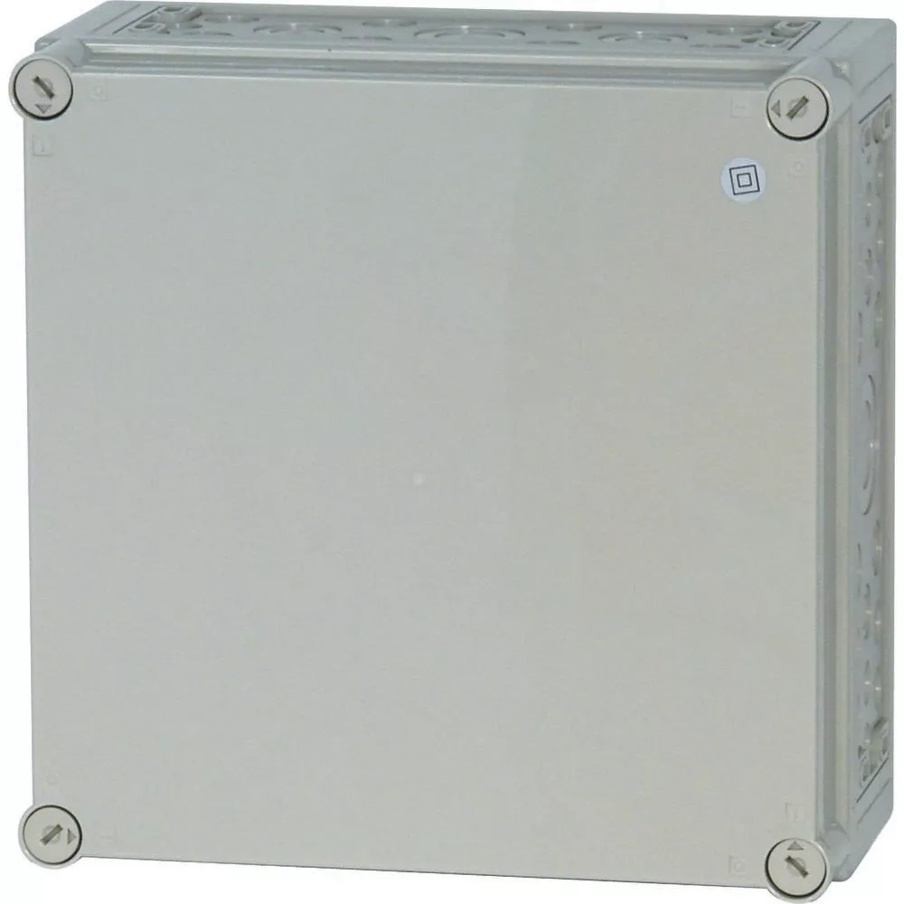 Einzel-Basisgehäuse, Material Polycarbonat, schlagfest, Schutzart IP65, patentierter Deckelverschluss mit integriertem Überdruckausgleich, mit metrischen Vorprägungen für Kabelführungen an allen Seiten, Leistungseinführungen oben und unten, jeweils = 1x M50/32, 2x M40/25, 8x M25/16 und 2x M20, jede Seite = 1x M63/40, 6x M25/16, 10x M20 und 2xM16, Befestigungsbänder zur Wandbefestigung, plombierbare Deckelverschlüsse, Seitenwände ausschlagbar, als Verteilergehäuse umbaubar durch Ausschlagen der Seitenwände., RAL 7035 Grau (Sockel), RAL 7035 Grau (Abdeckung), Einbautiefe bei Montageplatte=150mm