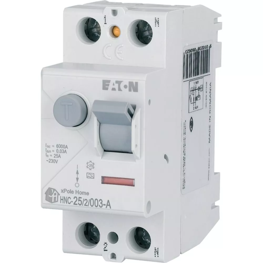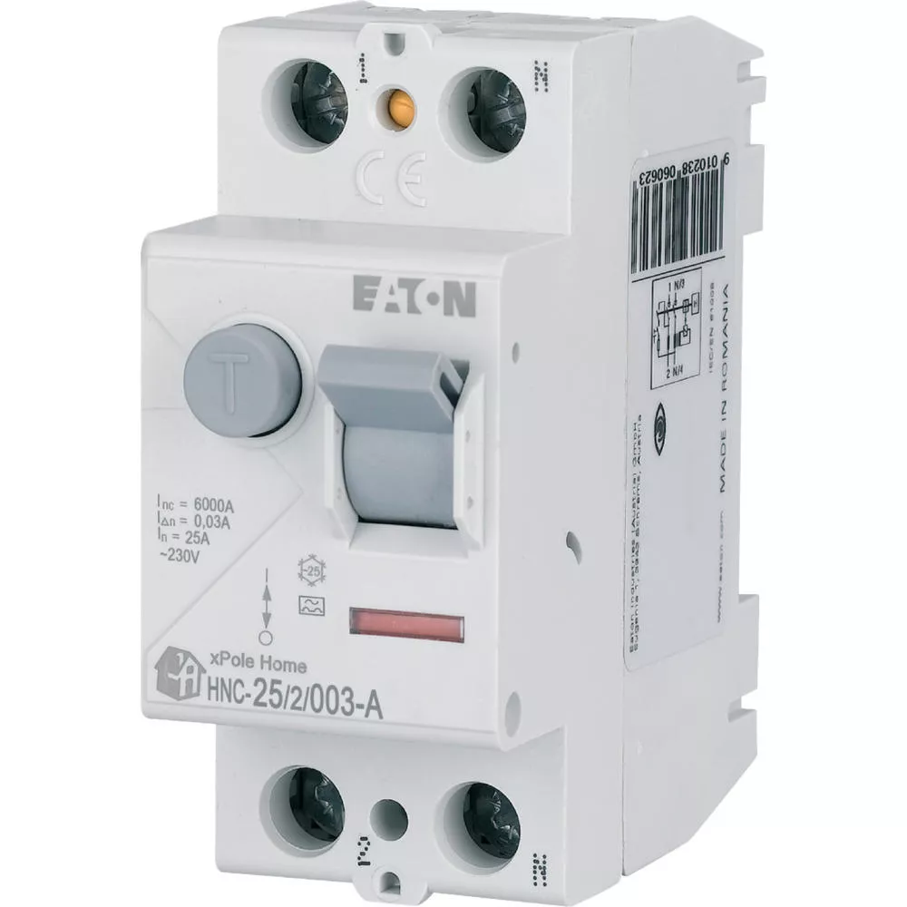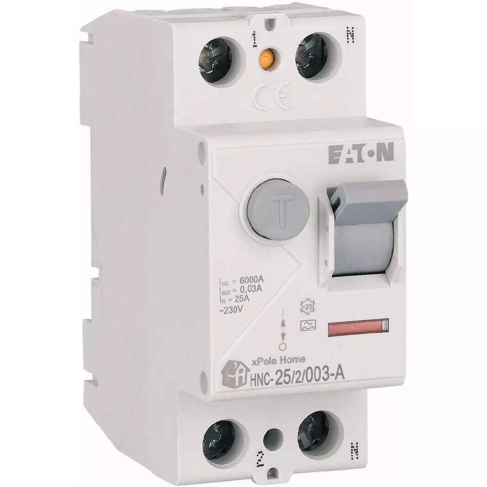 Fehlerstrom-Schutzschalter HNC, 2-polig, Bemessungsstrom Ein: 25 A, Bemessungskurzschlussfestigkeit Icn: 6 kA, Bemessungsfehlerstrom IΔN: 0,03 A, Typ A, Schaltgeräte für den Wohnungsbereich und kommerzielle Anwendungen