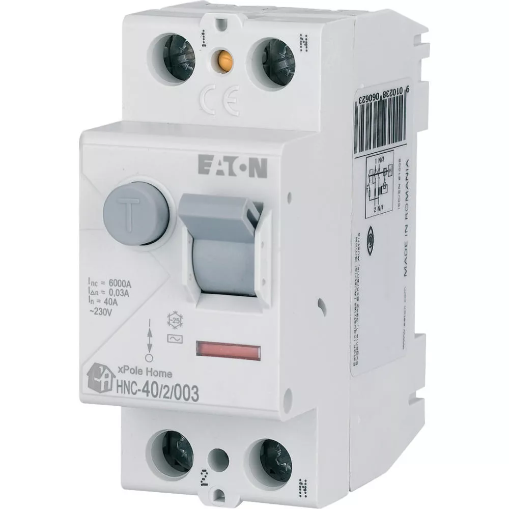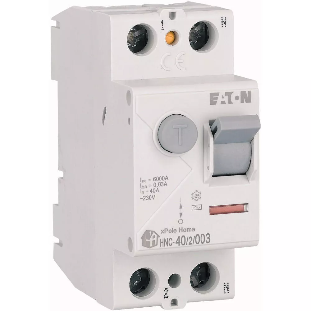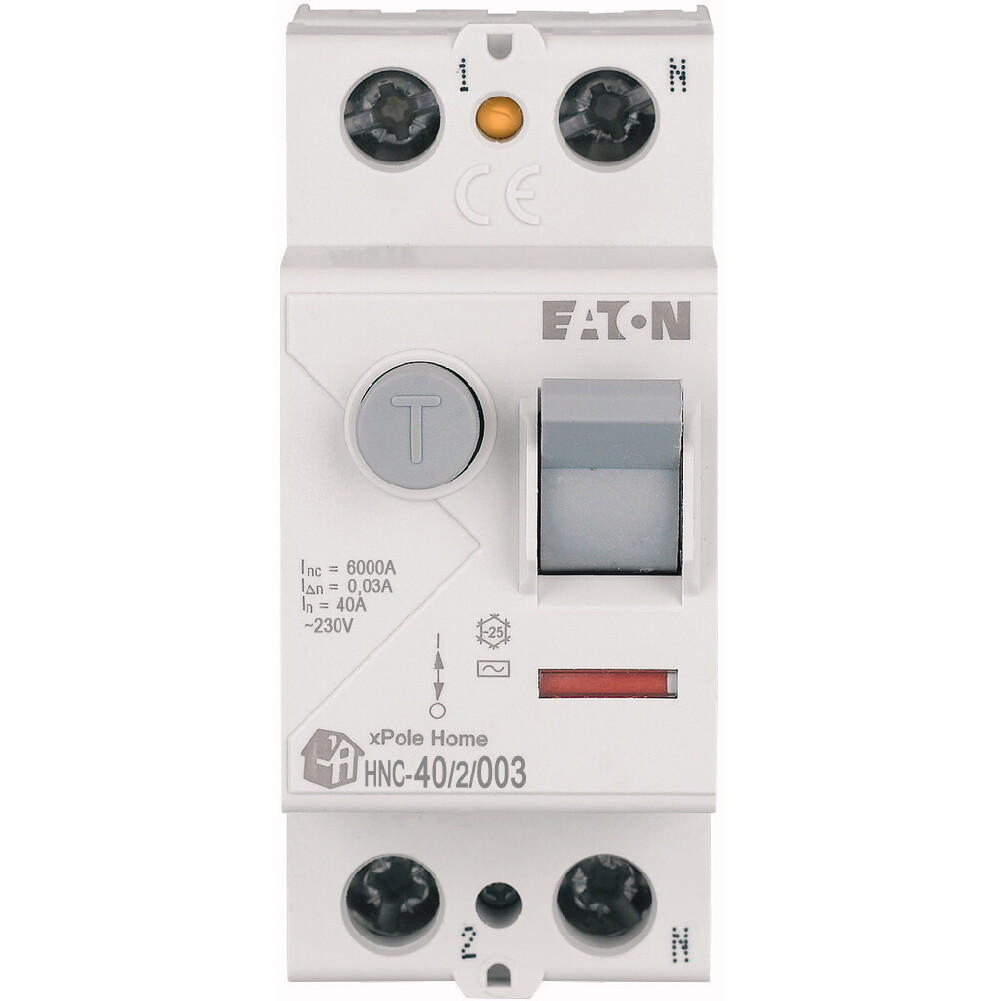 Fehlerstrom-Schutzschalter HNC, 2-polig, Bemessungsstrom Ein: 40 A, Bemessungskurzschlussfestigkeit Icn: 6 kA, Bemessungsfehlerstrom IΔN: 0,03 A, Typ Wechselstrom, Schaltgeräte für den Wohnungsbereich und kommerzielle Anwendungen