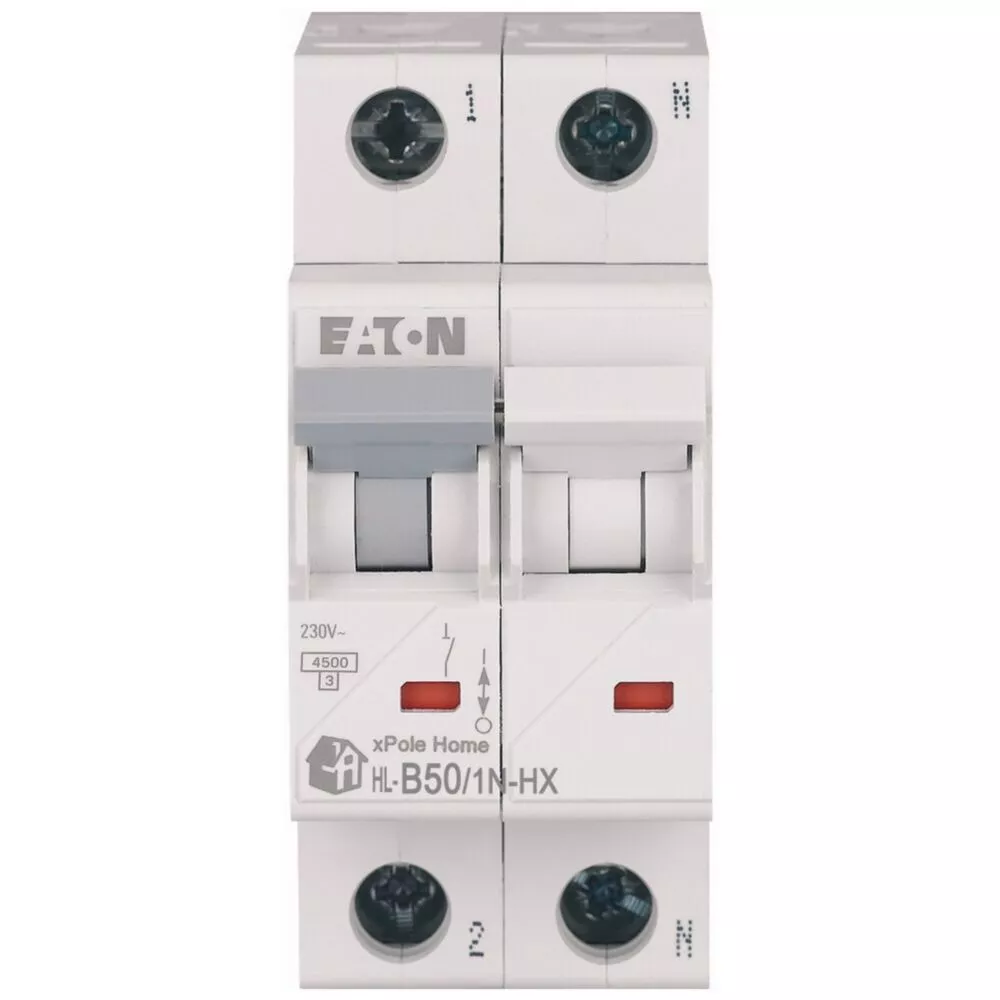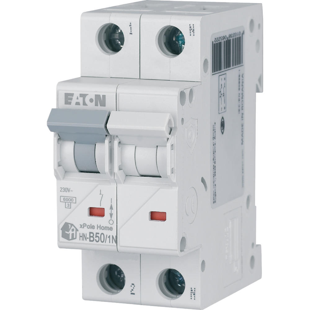 Leitungsschutzschalter (MCB), HN, xPole Home, 1-polig + N, Auslösecharakteristik: B, Bemessungsstrom Ein: 50 A, Bemessungsschaltvermögen nach IEC/EN 60898-1: 6 kA, Schaltgeräte für den Wohnungsbereich und kommerzielle Anwendungen