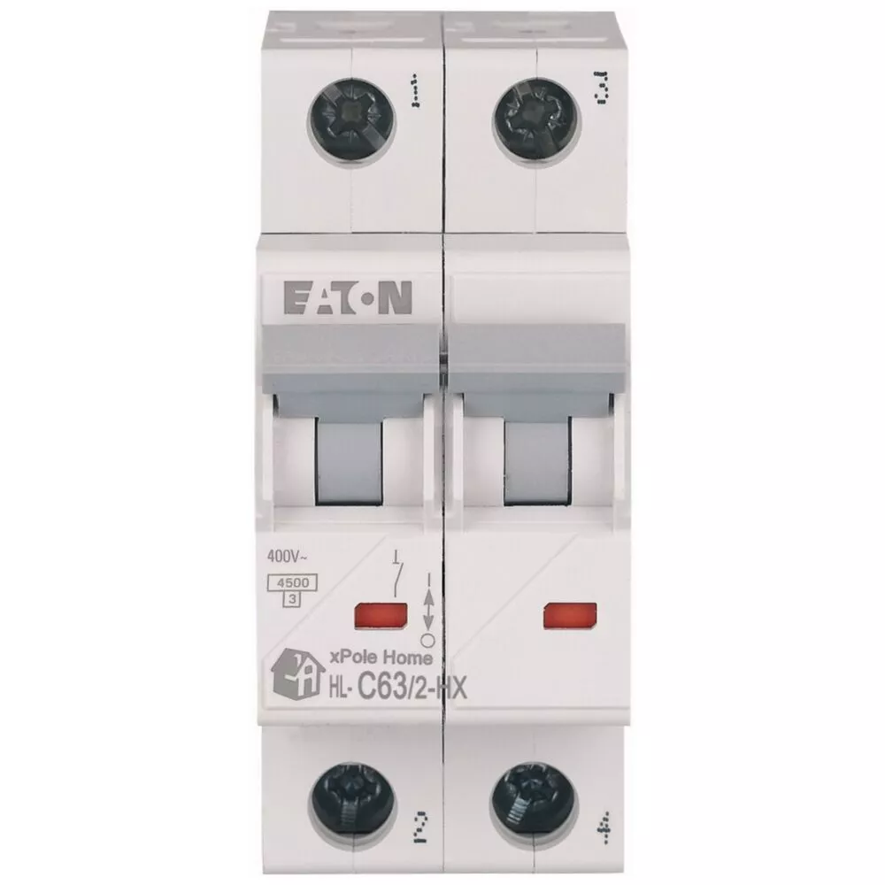 Leitungsschutzschalter (MCB), HN, xPole Home, 2-polig, Auslösecharakteristik: C, Bemessungsstrom Ein: 63 A, Bemessungsschaltvermögen nach IEC/EN 60898-1: 6 kA, Schaltgeräte für den Wohnungsbereich und kommerzielle Anwendungen