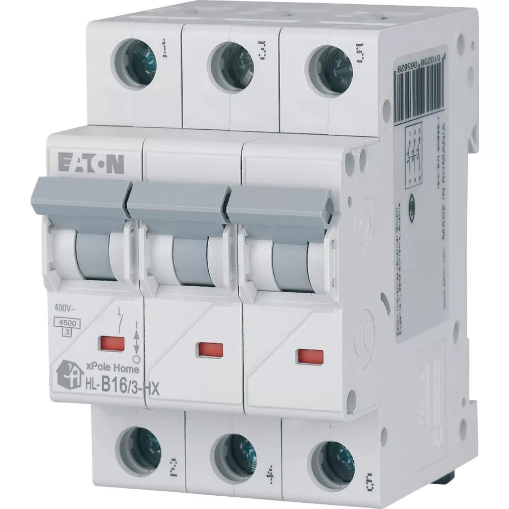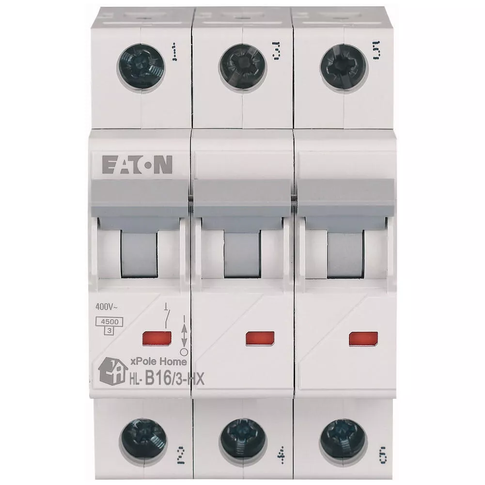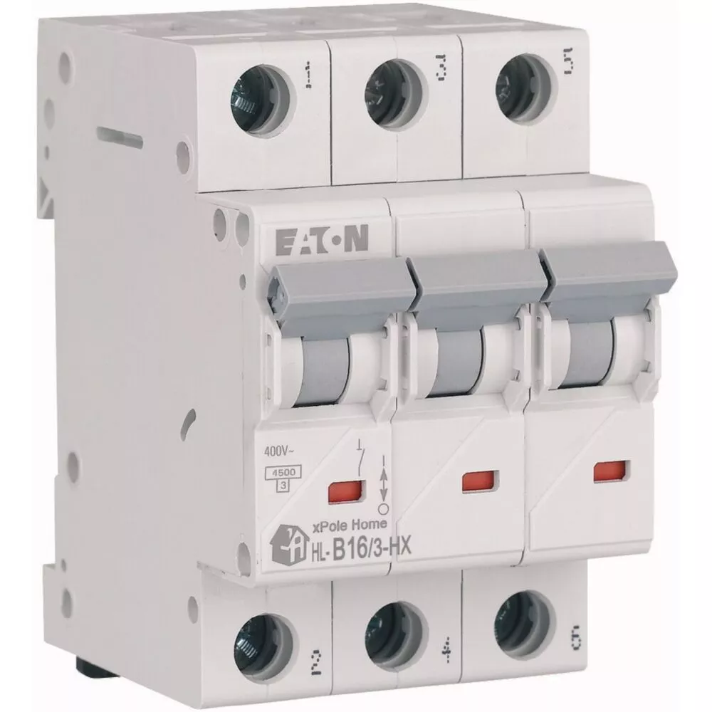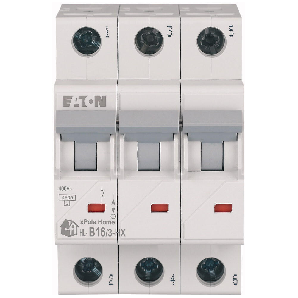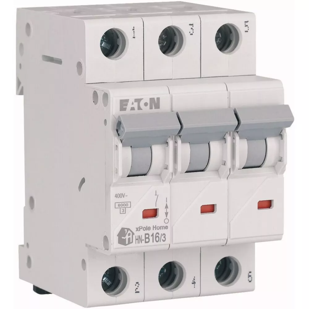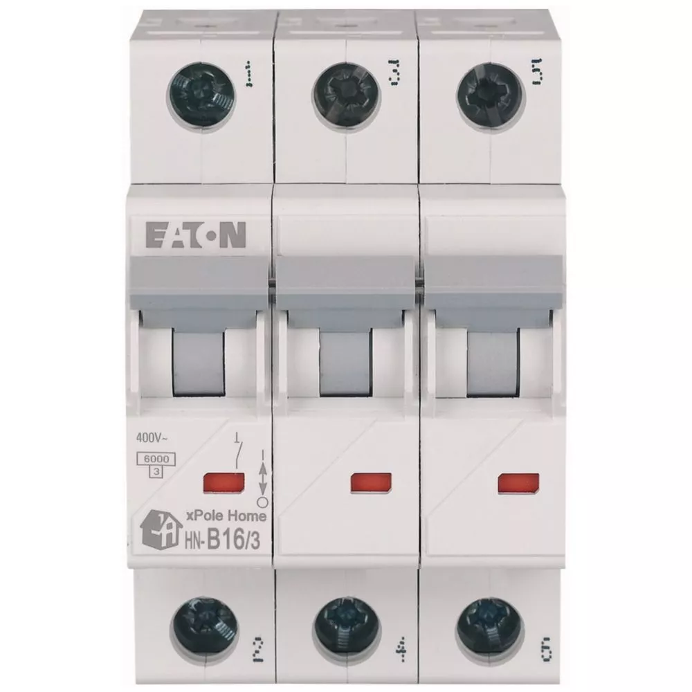Leitungsschutzschalter (MCB), HN, xPole Home, 3-polig, Auslösecharakteristik: B, Bemessungsstrom Ein: 16 A, Bemessungsschaltvermögen nach IEC/EN 60898-1: 6 kA, Schaltgeräte für den Wohnungsbereich und kommerzielle Anwendungen
