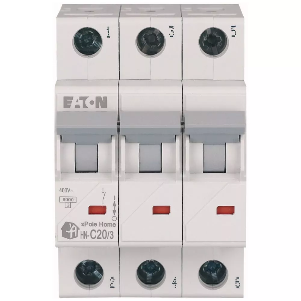 Leitungsschutzschalter (MCB), HN, xPole Home, 3-polig, Auslösecharakteristik: C, Bemessungsstrom Ein: 20 A, Bemessungsschaltvermögen nach IEC/EN 60898-1: 6 kA, Schaltgeräte für den Wohnungsbereich und kommerzielle Anwendungen