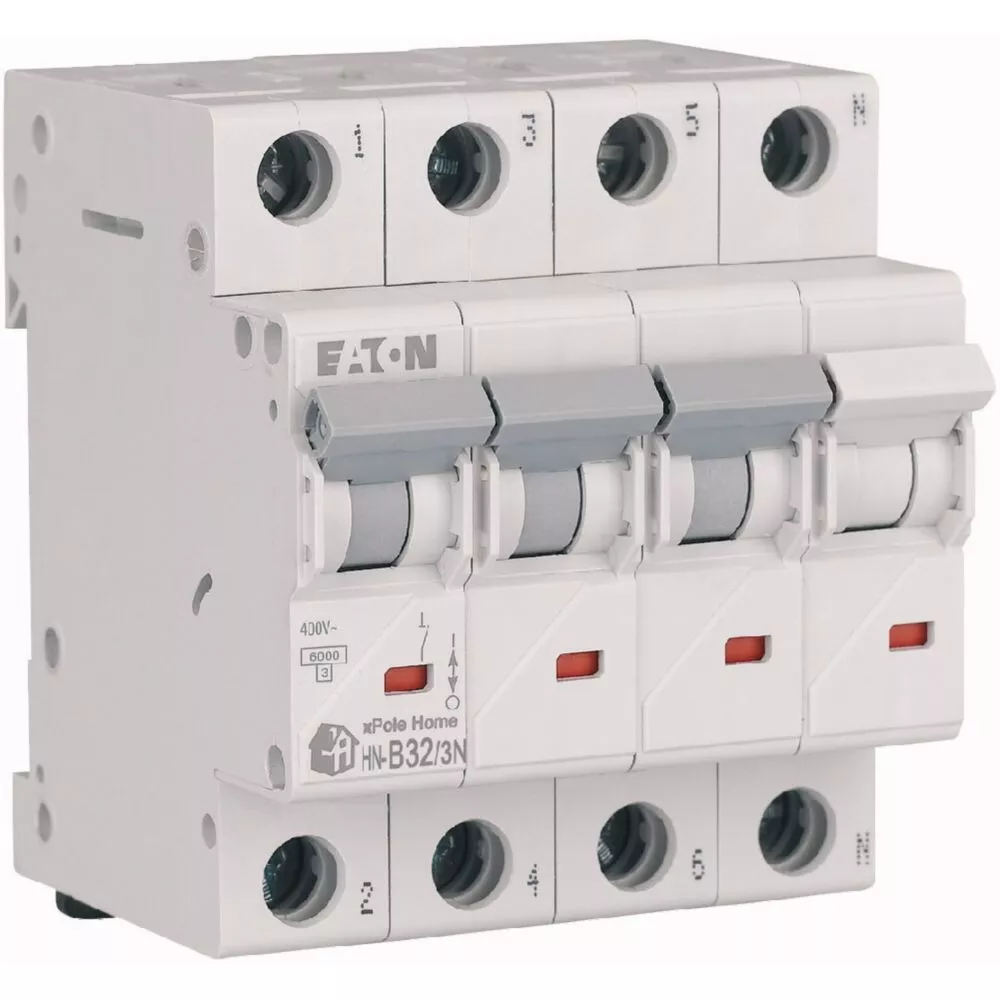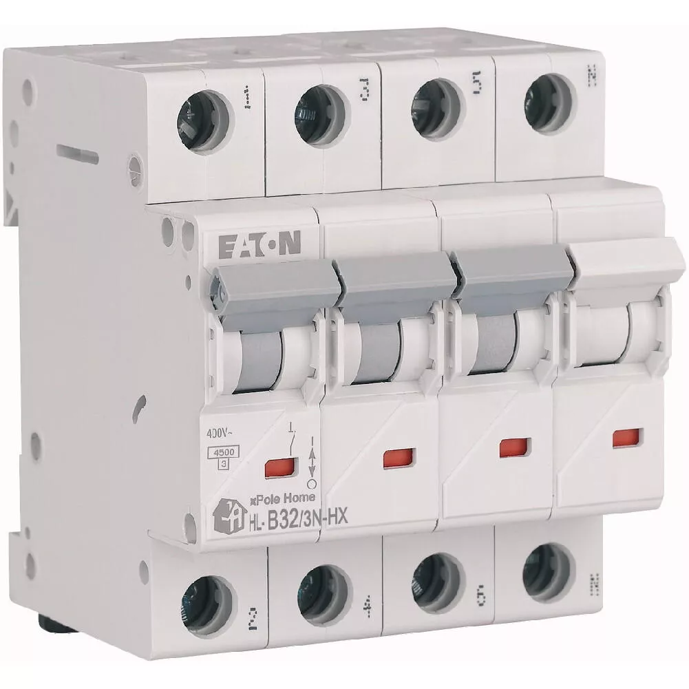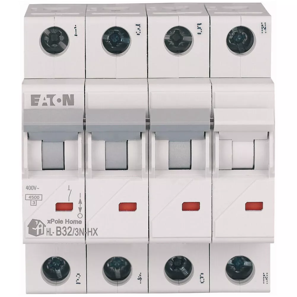 Leitungsschutzschalter (MCB), HN, xPole Home, 3-polig + N, Auslösecharakteristik: B, Bemessungsstrom Ein: 32 A, Bemessungsschaltvermögen nach IEC/EN 60898-1: 6 kA, Schaltgeräte für den Wohnungsbereich und kommerzielle Anwendungen