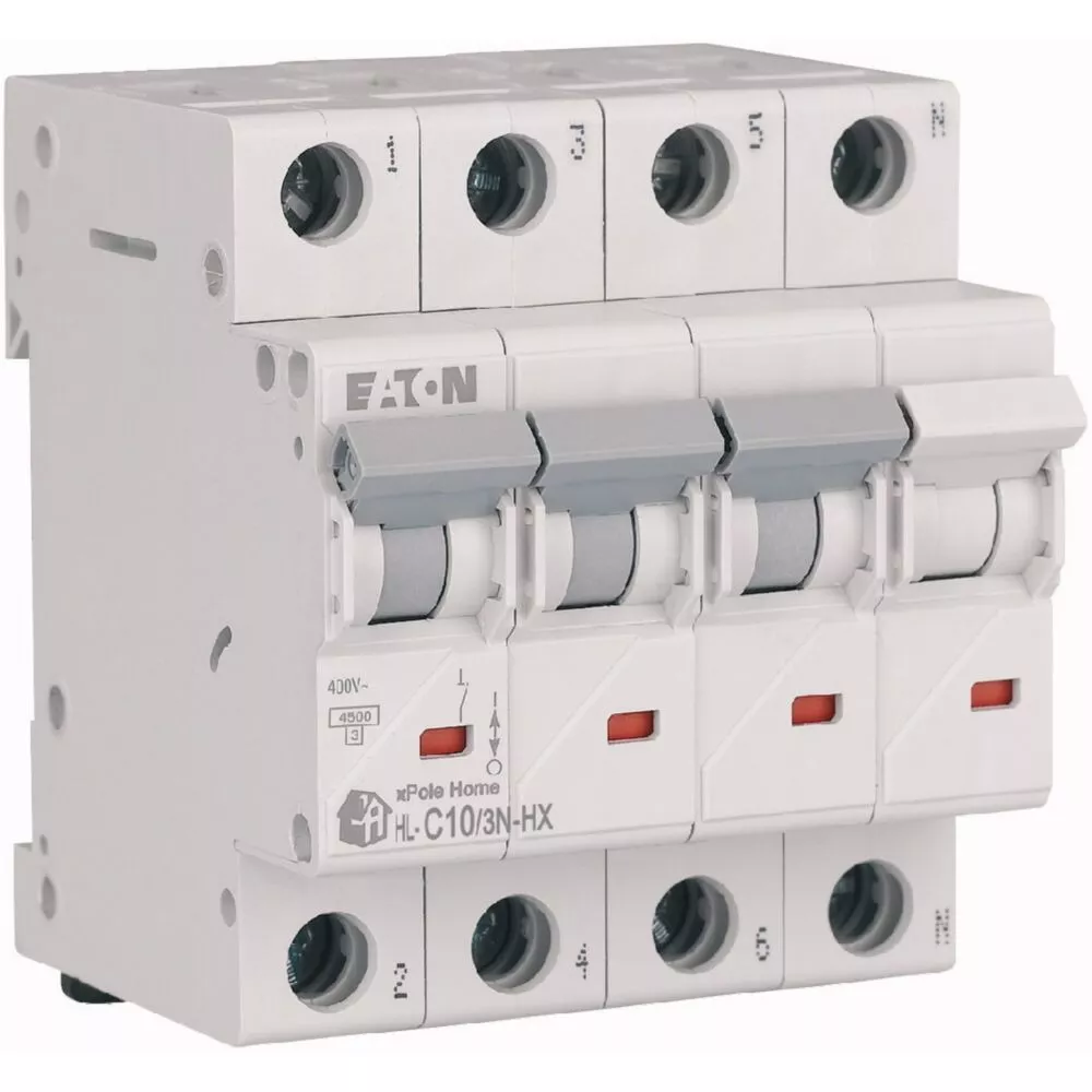 Leitungsschutzschalter (MCB), HN, xPole Home, 3-polig + N, Auslösecharakteristik: C, Bemessungsstrom Ein: 10 A, Bemessungsschaltvermögen nach IEC/EN 60898-1: 6 kA, Schaltgeräte für den Wohnungsbereich und kommerzielle Anwendungen