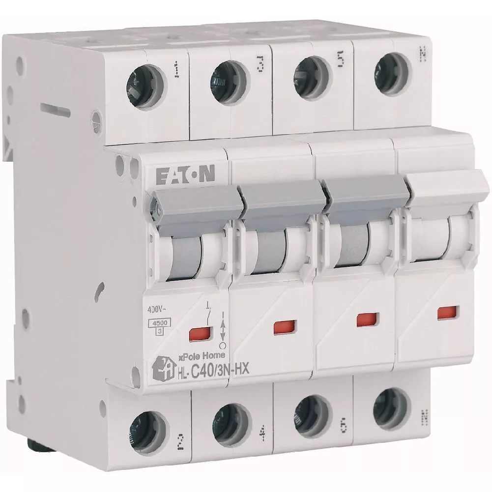 Leitungsschutzschalter (MCB), HN, xPole Home, 3-polig + N, Auslösecharakteristik: C, Bemessungsstrom Ein: 40 A, Bemessungsschaltvermögen nach IEC/EN 60898-1: 6 kA, Schaltgeräte für den Wohnungsbereich und kommerzielle Anwendungen