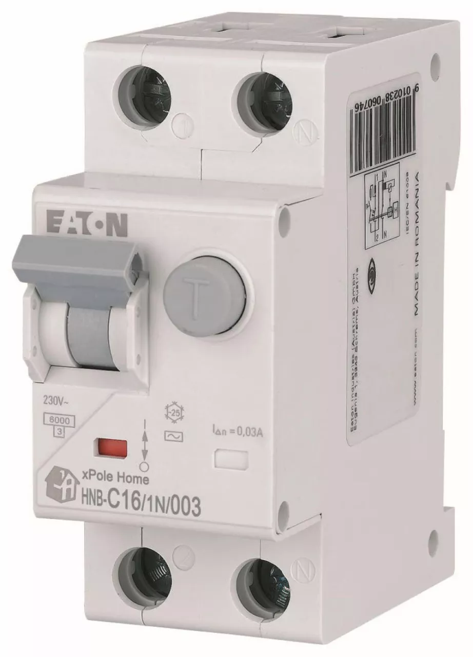 HNB-C16/1N/003 Wyłącznik kombinowany 6kA, In=16A, IΔN=0,03A, char. C, typ AC, 1+N bieg. Seria HNB
