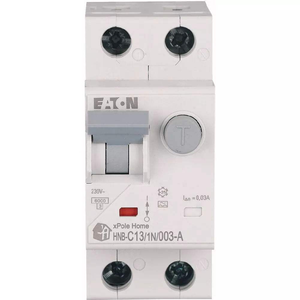 Wyłącznik kombinowany RCD/MCB, HNB, 1-biegunowy+N, prąd znamionowy In: 13 A, znamionowy prąd różnicowy: 0,03 A, znamionowa zdolność wyłączania zgodnie z IEC/EN 61009: 6 kA, Rozdzielnice do zastosowań mieszkaniowych i komercyjnych