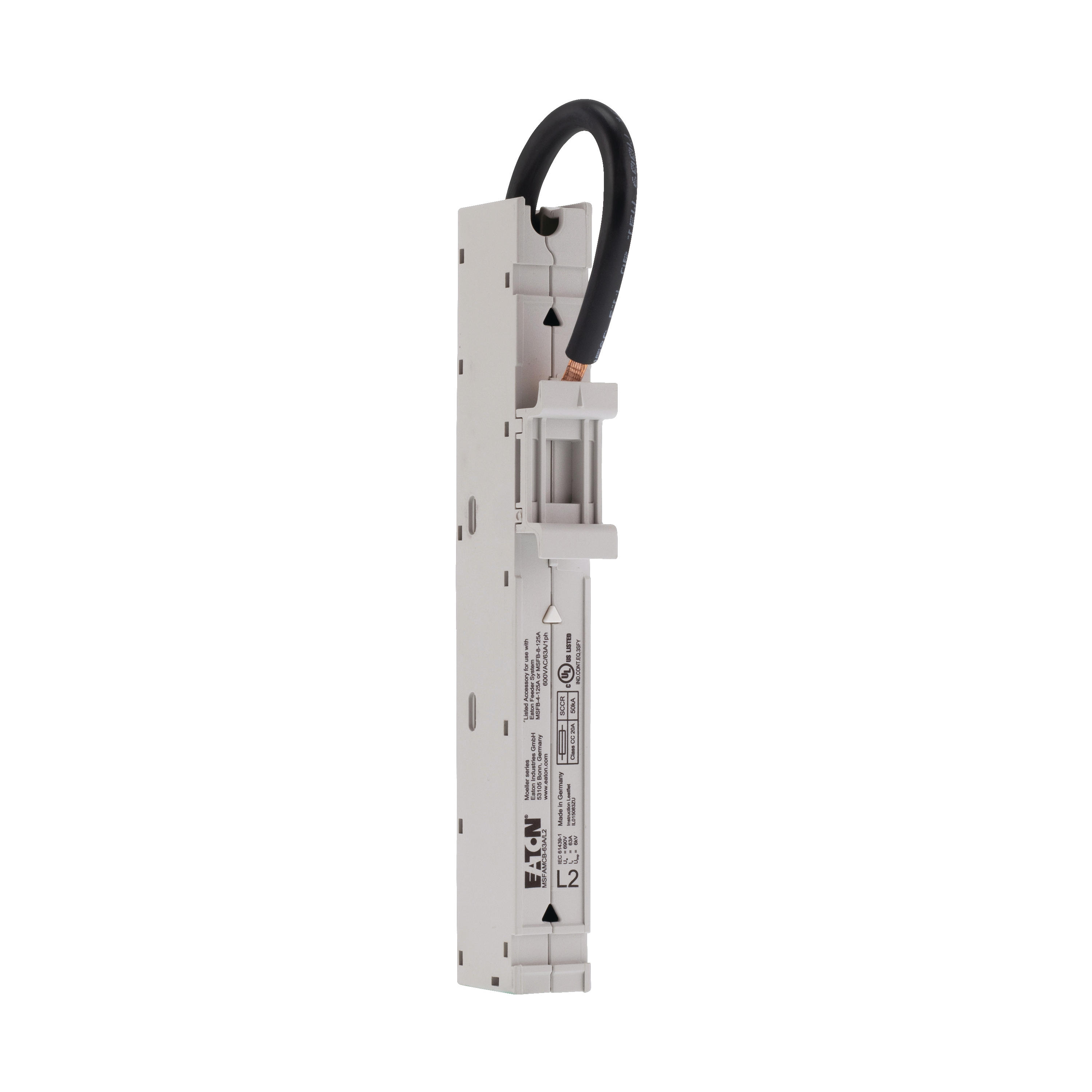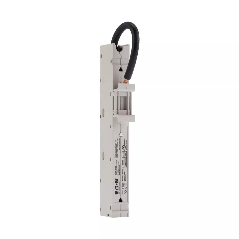 Adapter, gama: akcesoria, adapter na szyny zbiorcze, zatwierdzono zgodnie z UL 508, możliwość używania do: Wyłącznik miniaturowy FAZ, 63 A, 1-biegunowy, połączenie ze znamionowym napięciem roboczym L2: Ue = 690 V, znamionowy prąd roboczy: Ie= 63 A, przekrój kabla: #8 AWG, (10 mm²), szerokość adaptera: 18 mm, długość adaptera: 160 mm, szyna montażowa: 1