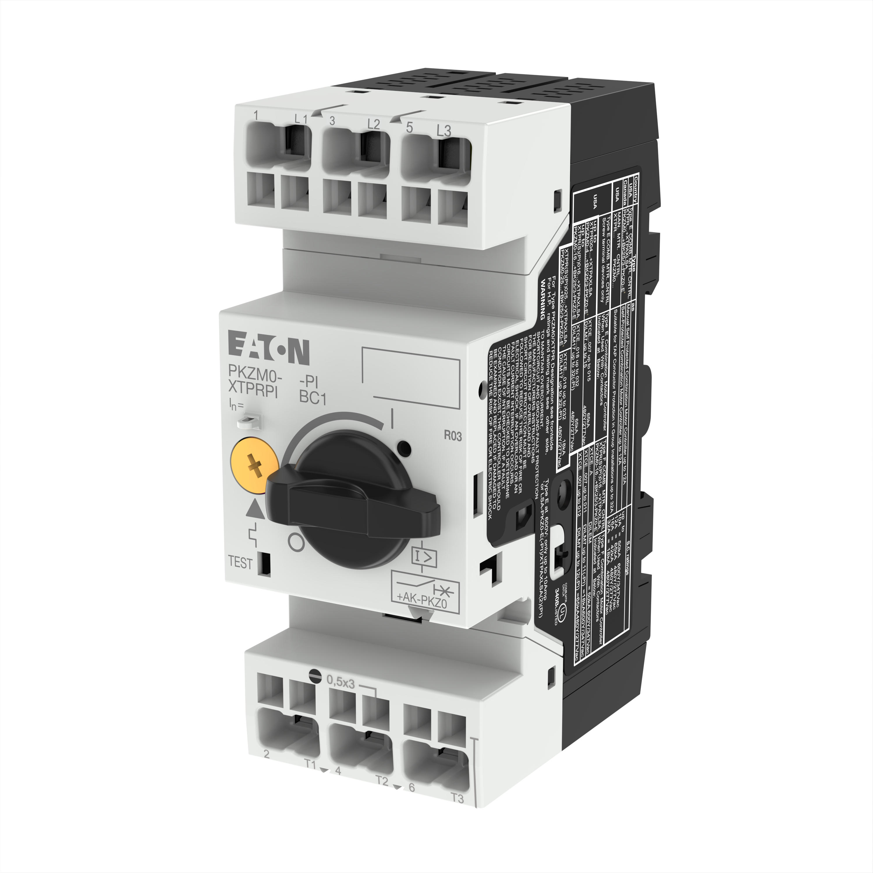 Motorschutzschalter, IEC/EN 60947, VDE 0660, Überlastauslöser 0,16 - 0,25 A: max. 3,9 A, Abschalttechnik Thermomagnetisch, Mit thermischem Schutz Ja, Phasenausfallempfindlich Ja, Bemessungsdauerstrom Iu 0,25 A, Bemessungsbetriebsleistung bei AC-3, 230 V 0 kW, 400 V 0,06 kW, Ausführung des Betätigungselements Drehknopf, Polzahl 3: Bemessungsgrenzkurzschlussausschaltstrom Icu bei 400 V, AC 150 kA, Gerät IP20, Anschlussklemmen IP20, Lagerung - 40 - 80 °C, Offen -25 - +55 °C, Energie-Einspeiserichtung nach Bedarf